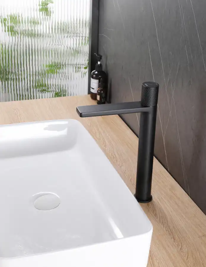 Смеситель для накладной раковины Abber Rund AF8711B, однорычажный, высокий, Черный матовый