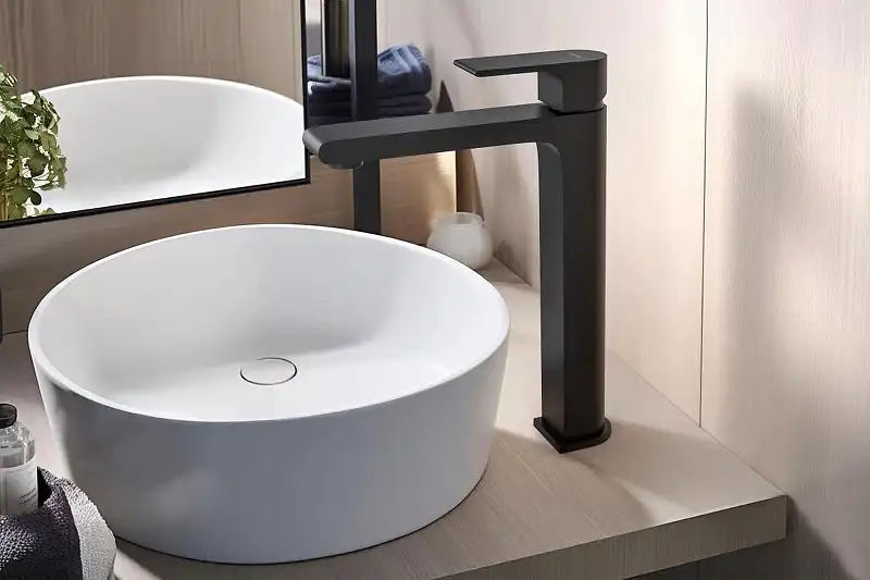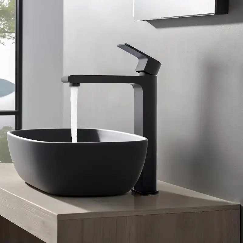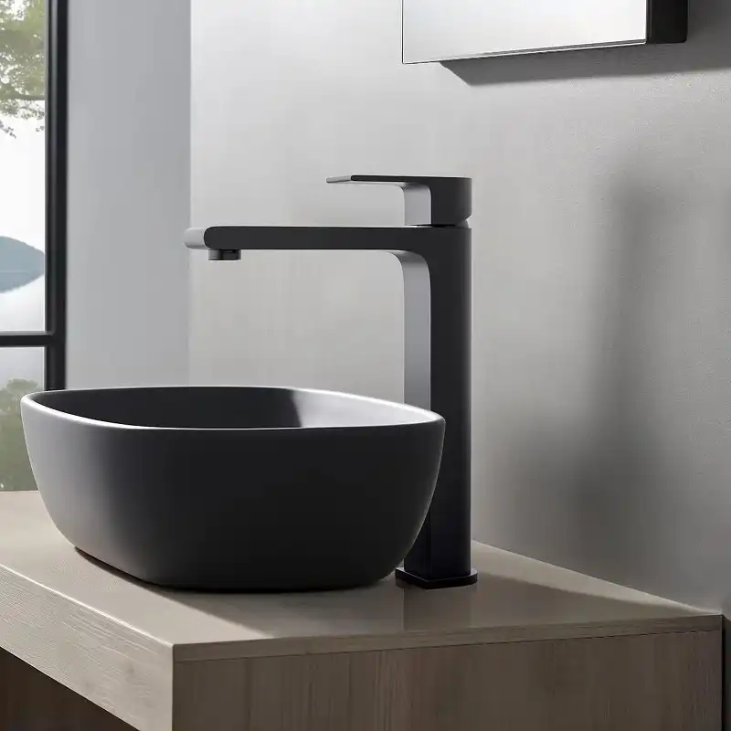 Смеситель для накладной раковины Aquatek Лира AQ1404MB, однорычажный, высокий, Черный матовый