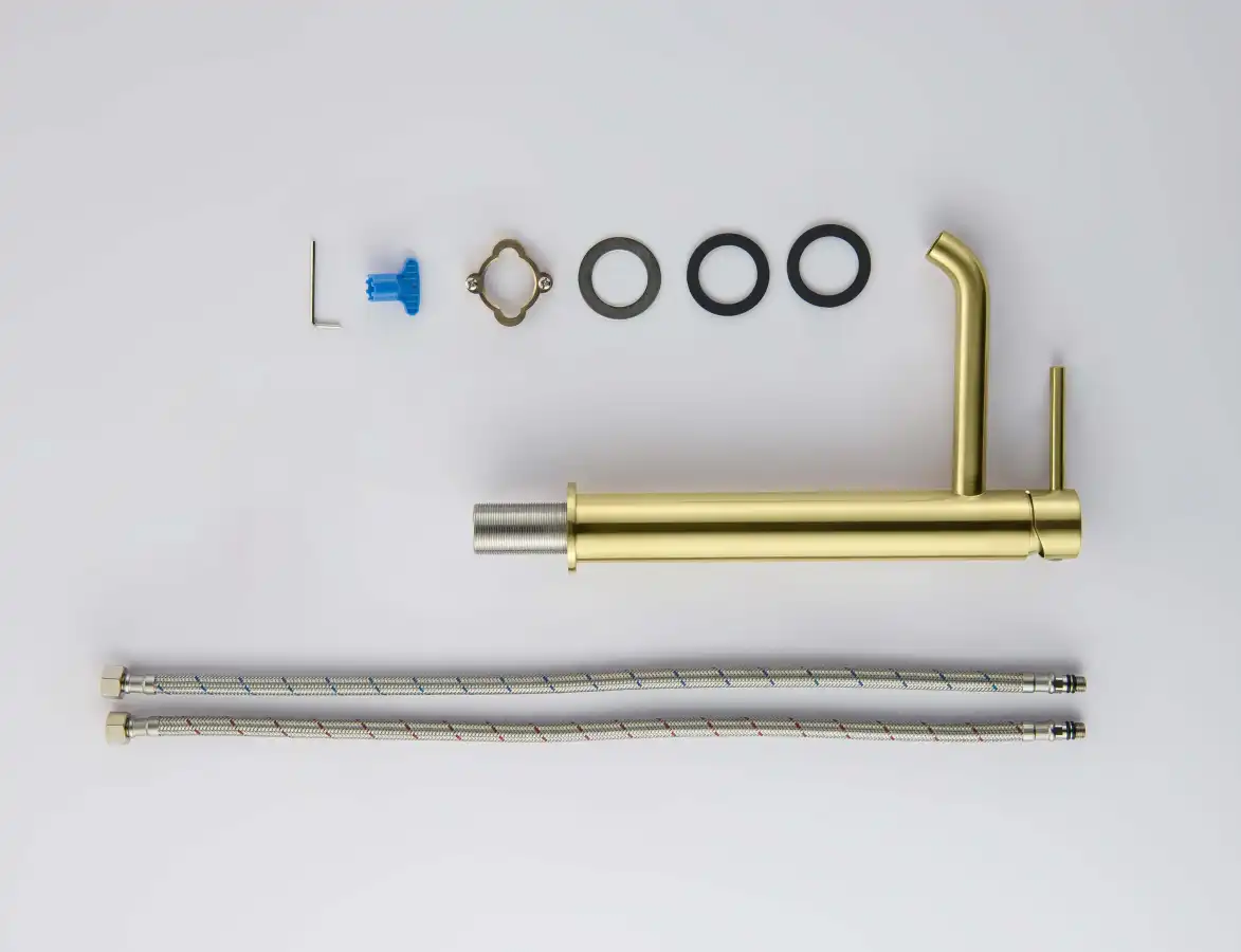 Комплектация1. Смеситель 2. Гибкая подводка 60см 3. Монтажный комплект 4. Слив-перелив и донный клапан в комплект не входят