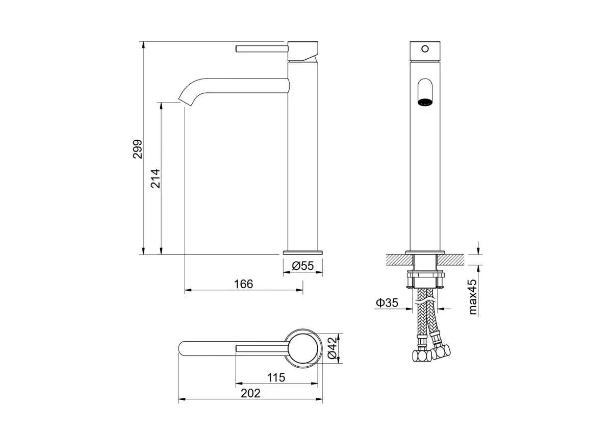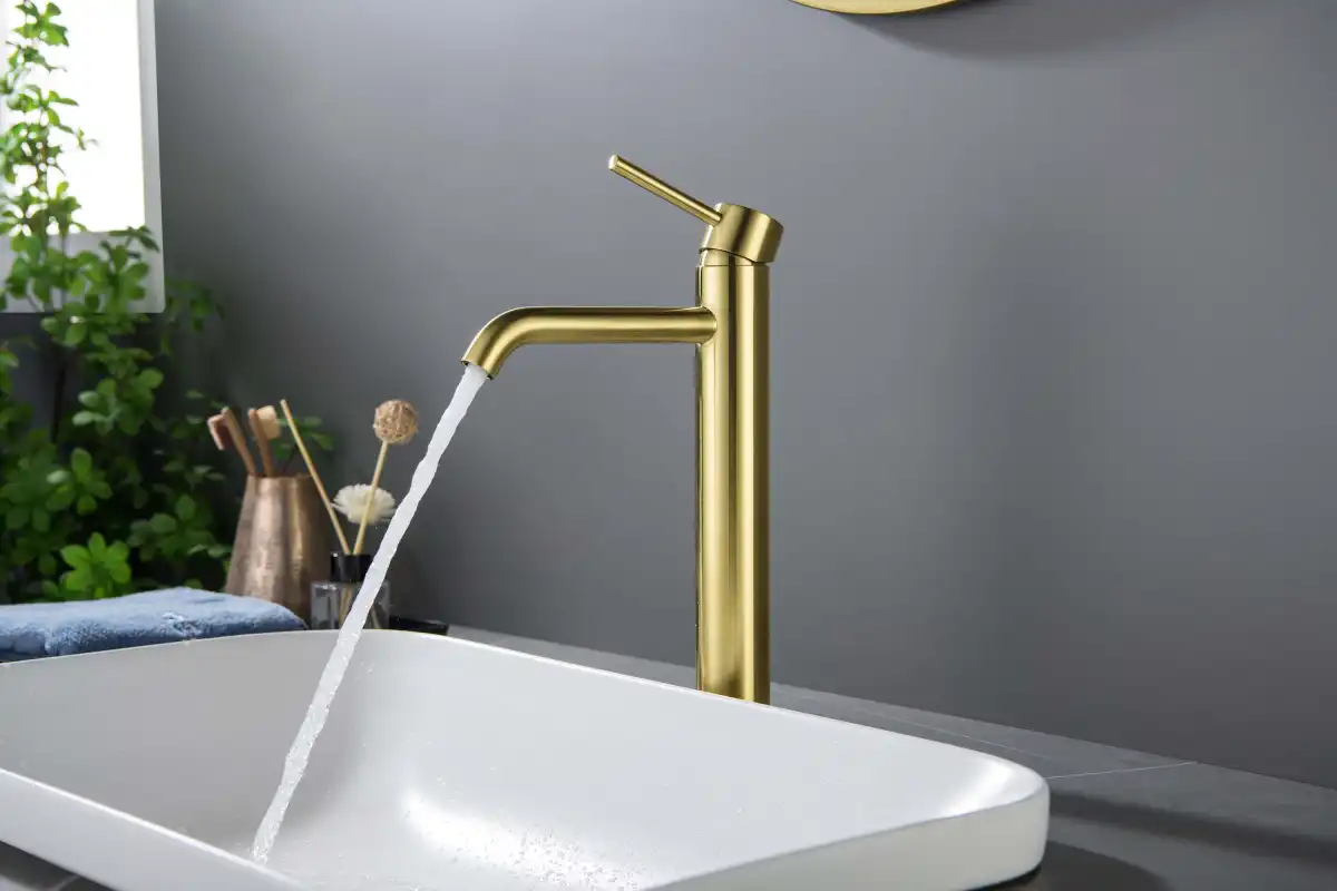 Aquatek | AQ1304BG ЕВРОПА смеситель для раковины высокий 215, без донного клапана, шлиф. золото.