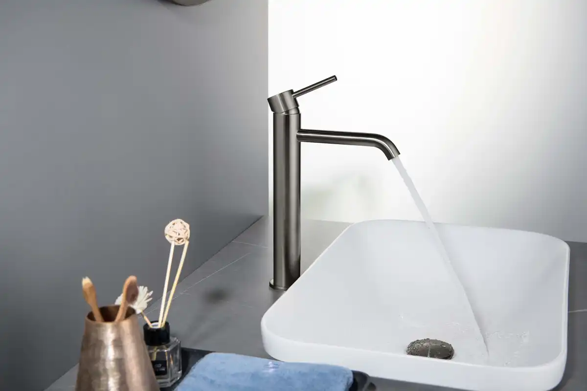 Aquatek | AQ1304BGM ЕВРОПА смеситель для раковины высокий 215, без донного клапана, оружейная сталь.