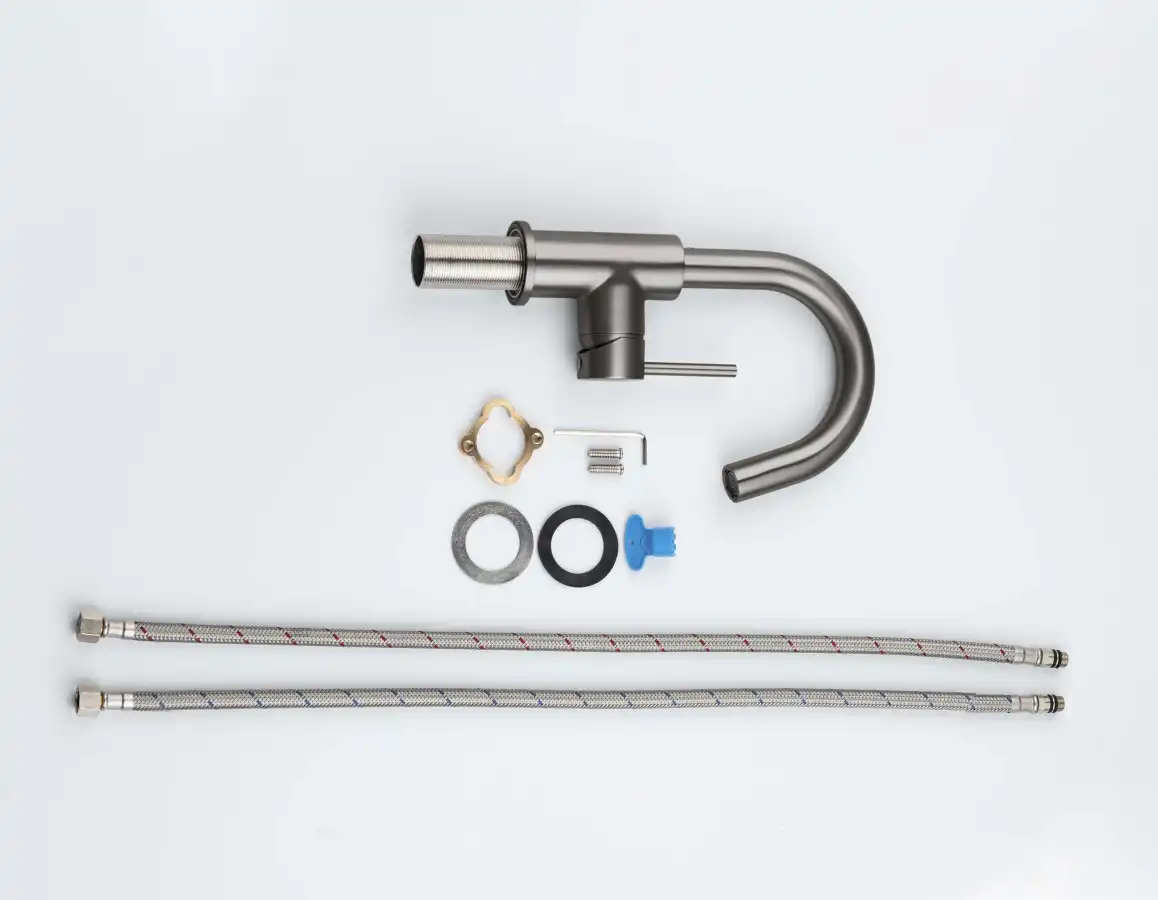 Комплектация1. Смеситель 2. Гибкая подводка 60см 3. Монтажный комплект 4. Слив-перелив и донный клапан в комплект не входят