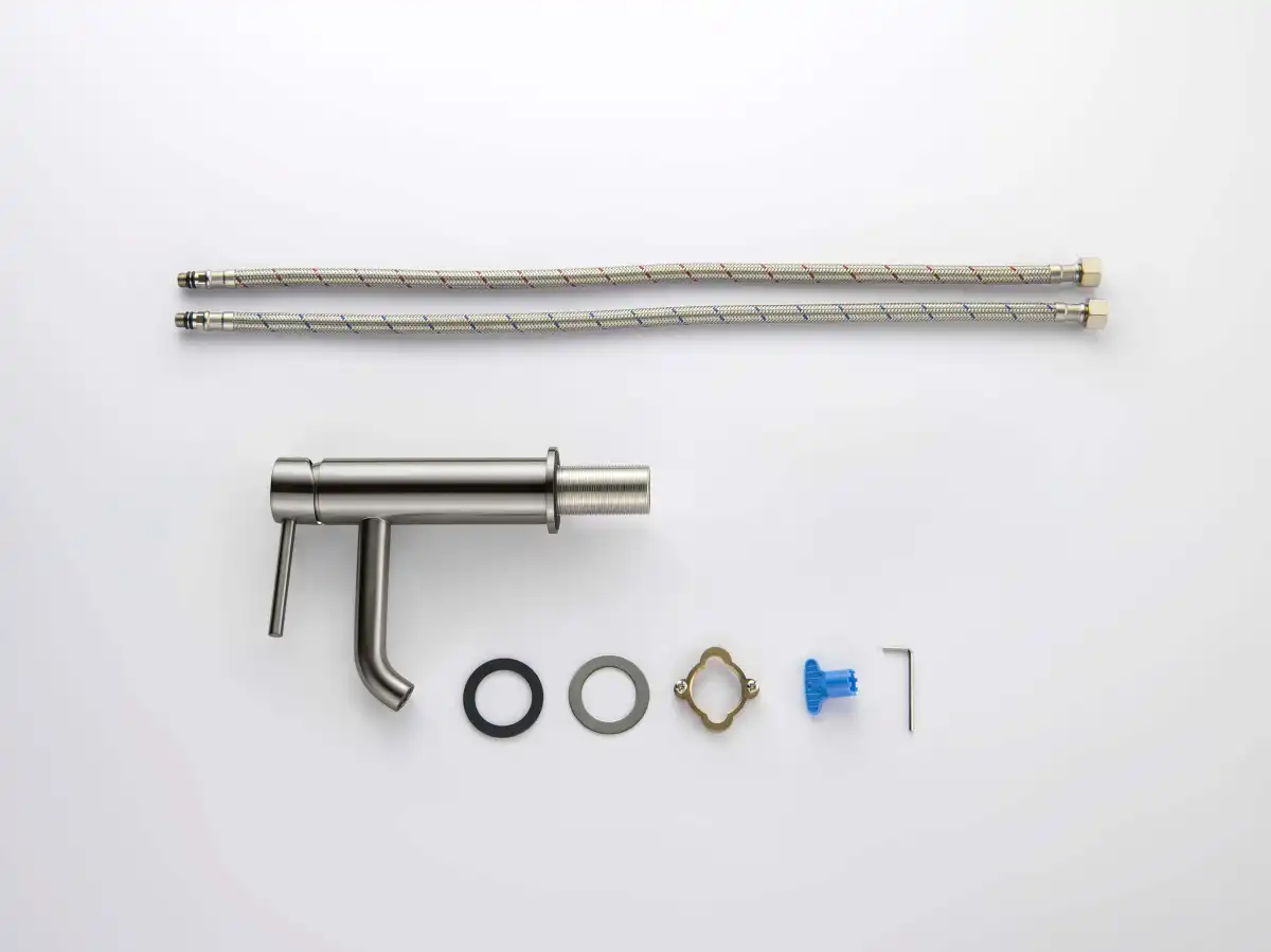 Комплектация1. Смеситель 2. Гибкая подводка 60см 3. Монтажный комплект 4. Слив-перелив и донный клапан в комплект не входят