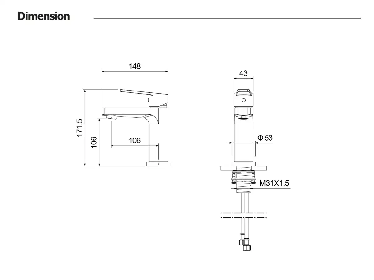 Aquatek | AQ1710CR ЛУГАНО смеситель для раковины 106 без донного клапана, хром.