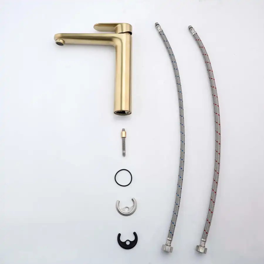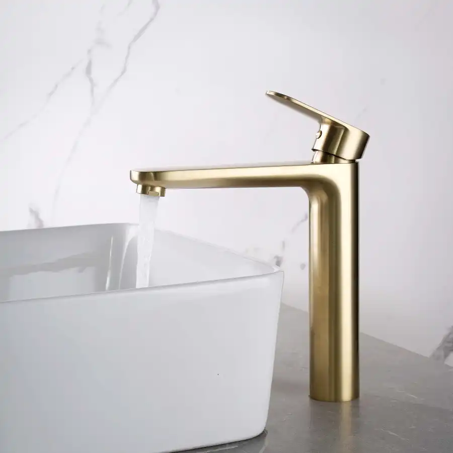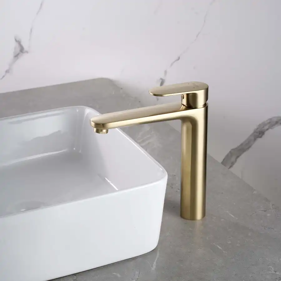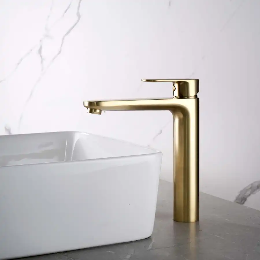 Aquatek | AQ1804BG НИКА смеситель для раковины высокий 190 без донного клапана, шлиф.золото.
