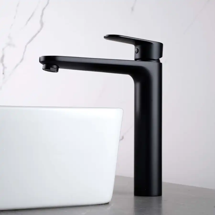 Aquatek | AQ1804MB НИКА смеситель для раковины высокий 190 без донного клапана, матовый черный.