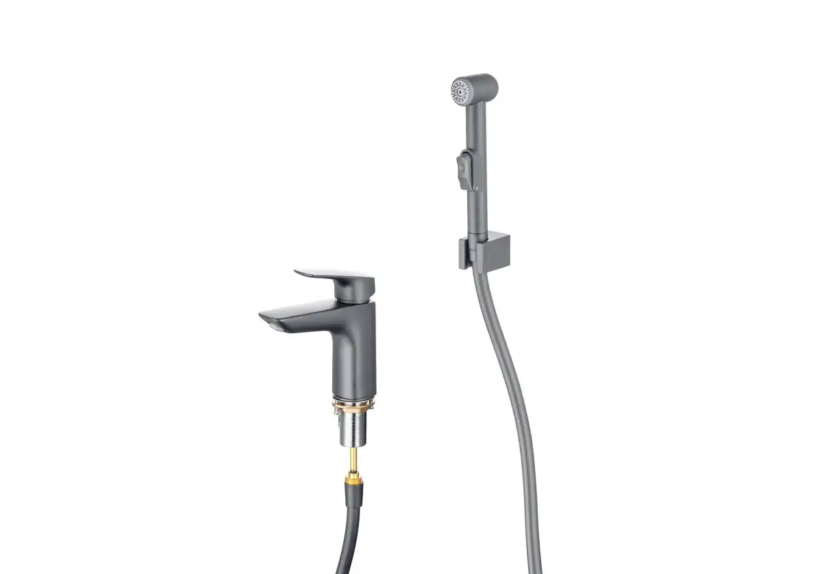 Aquatek | AQ1012BGM ВЕГА смеситель для раковины 97 с гигиеническим ручным душем, оружейная сталь.