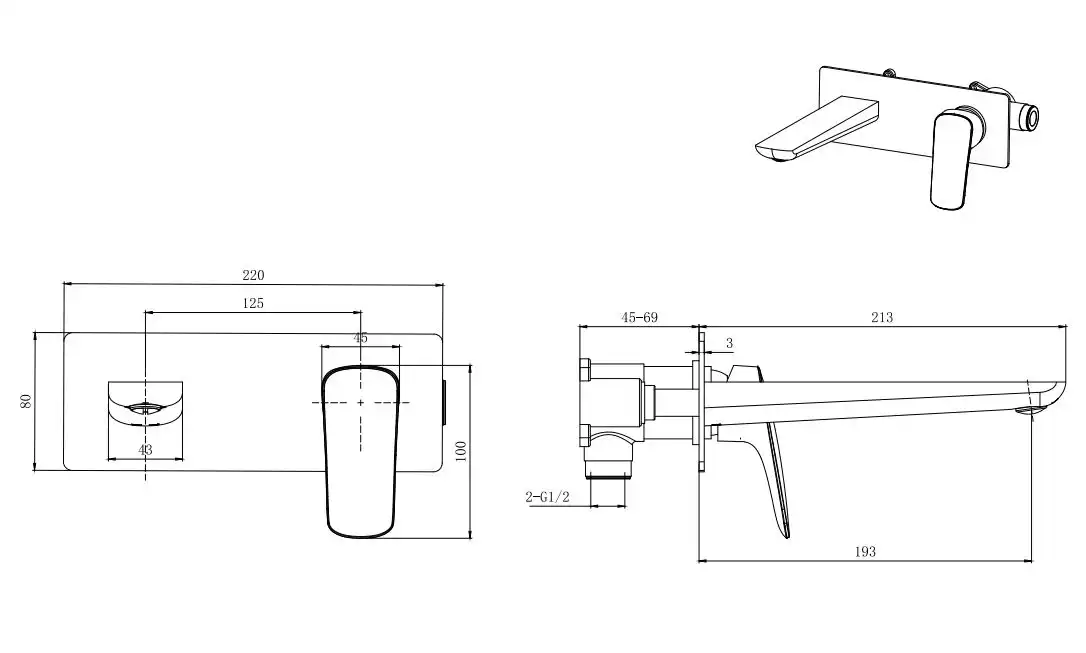 Смеситель для раковины настенный AQUATEK (внешняя и скрытая часть), матовый черный AQ1013MB ВЕГА