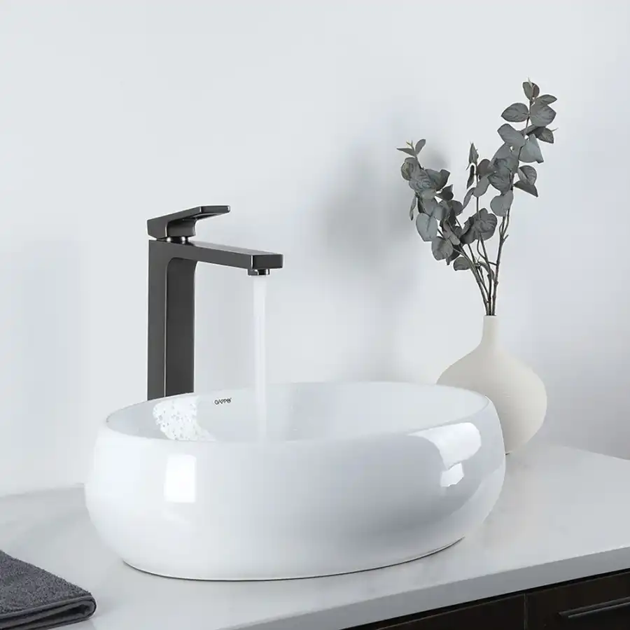 Смеситель для раковины Gappo G1017-92 высокий, Оружейная сталь