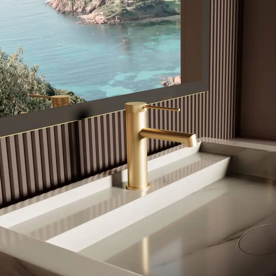 Смеситель для раковины Vincea Rim VBF-2RM1BG однорычажный, брашированное золото