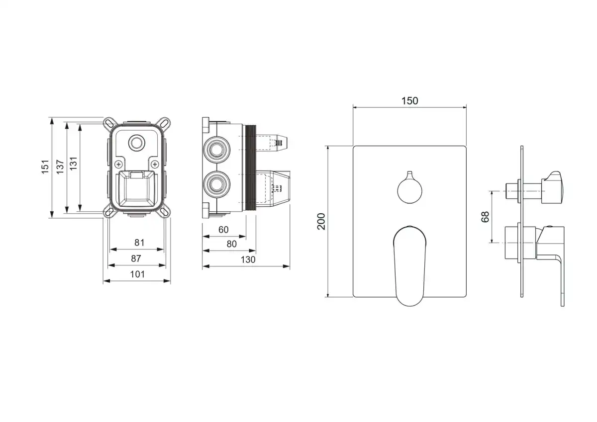 Комплектация1. Смеситель (внешняя и скрытая часть) 2. Декоративная накладка на стену из нержавеющей стали 3 мм 3. Душевой гарнитур приобретается отдельно