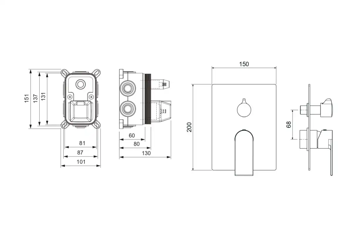 - Смеситель из латуни с установочной коробкой на 3 потребителя