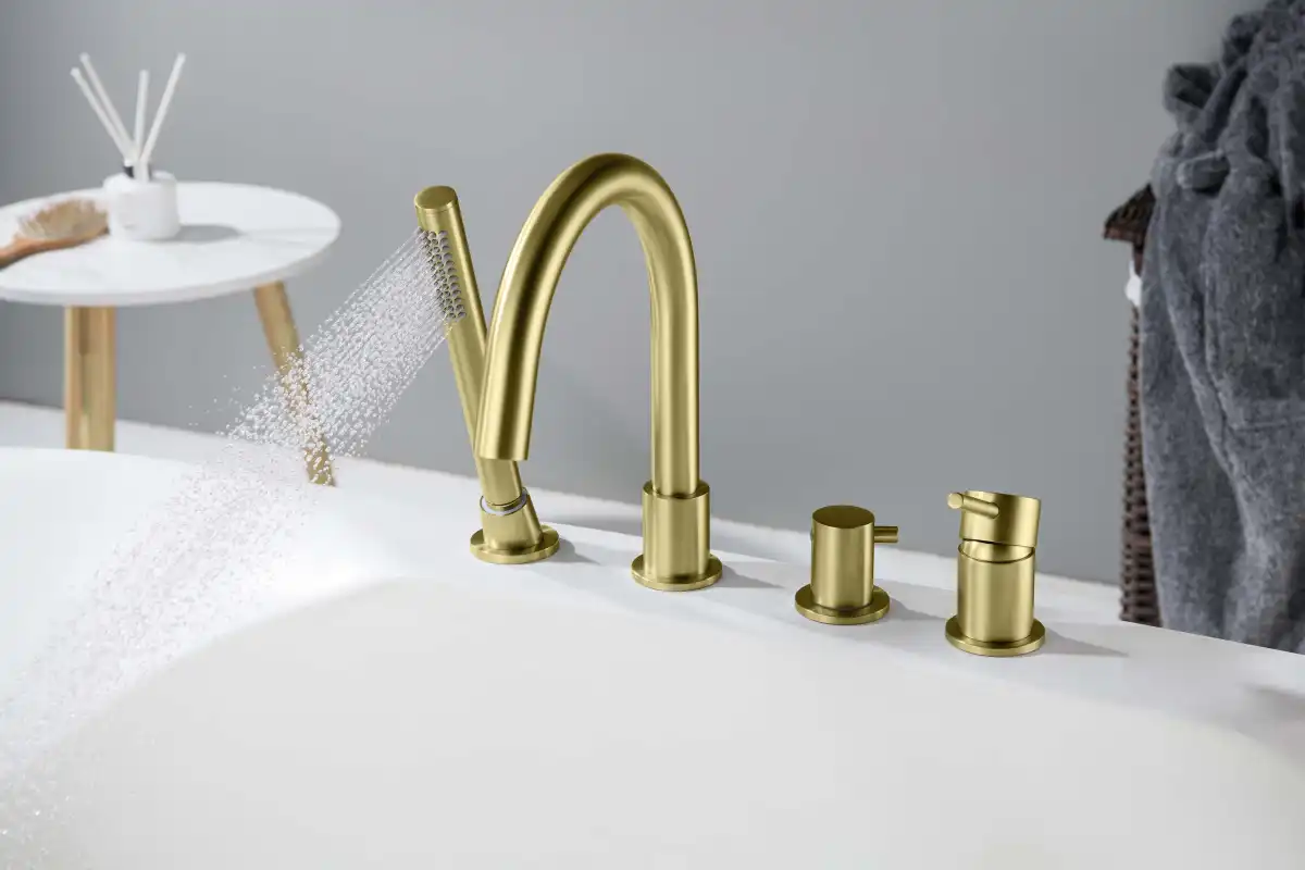 Aquatek | AQ1348BG ЕВРОПА смеситель на борт ванны на 4 отв., шлиф. золото.