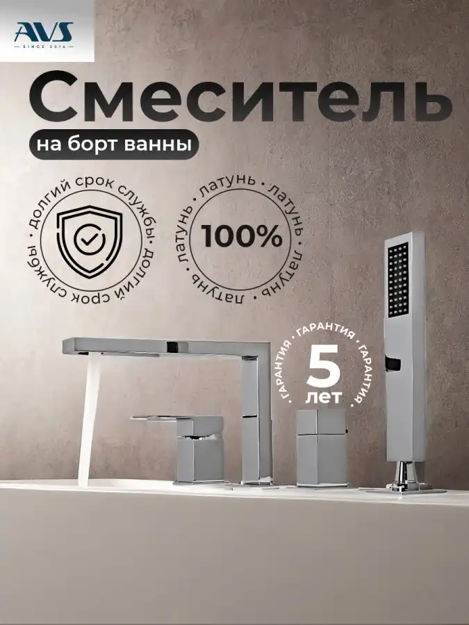 Смеситель на борт ванны AVS Cube хром, 811-212-CR.