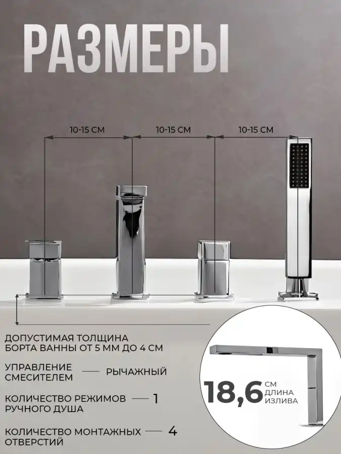 Тип изделияСмеситель на борт ванны
