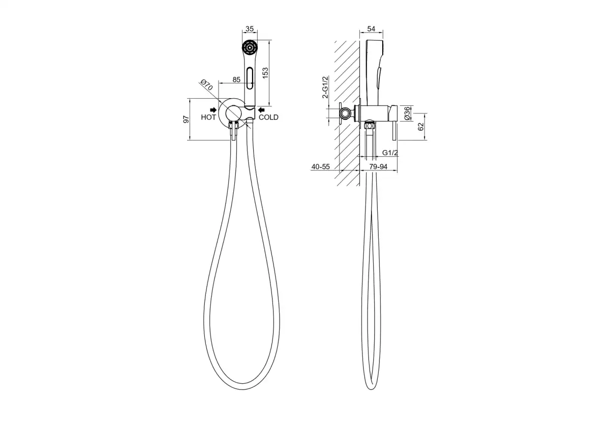 Комплектация1. Смеситель 2. Шланг для лейки 120 см 3. Гигиеническая лейка оснащена нажимным механизмом для остановки потока воды 4. Декоративная накладка/отражатель из нержавеющей стали 5. Мон