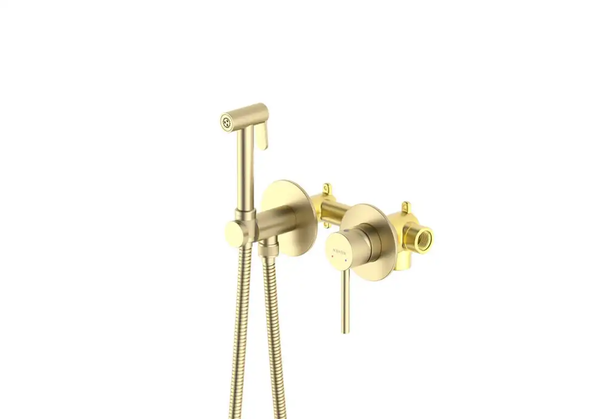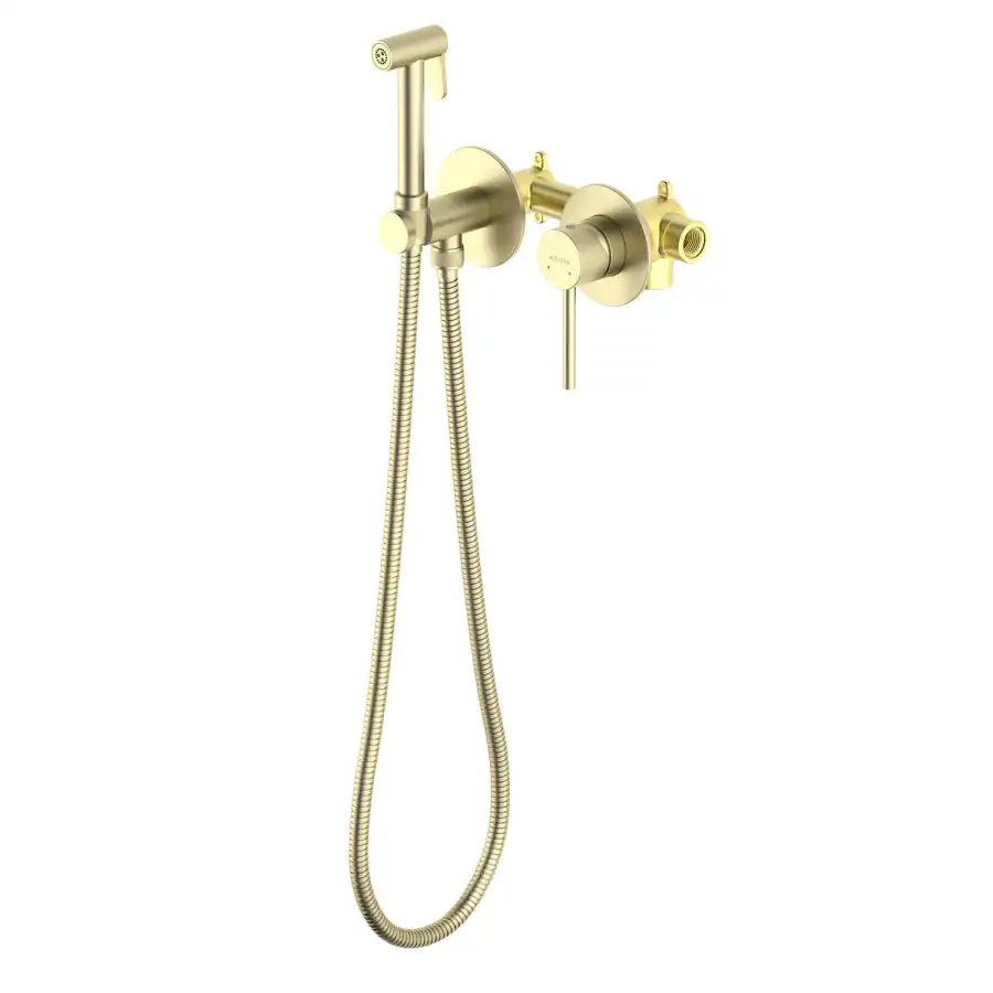 Aquatek | AQ1319BG ЕВРОПА комплект для гигиенического душа встроенный 2 отв. (смеситель + гигиеническая лейка + шланг), шлиф. золото.