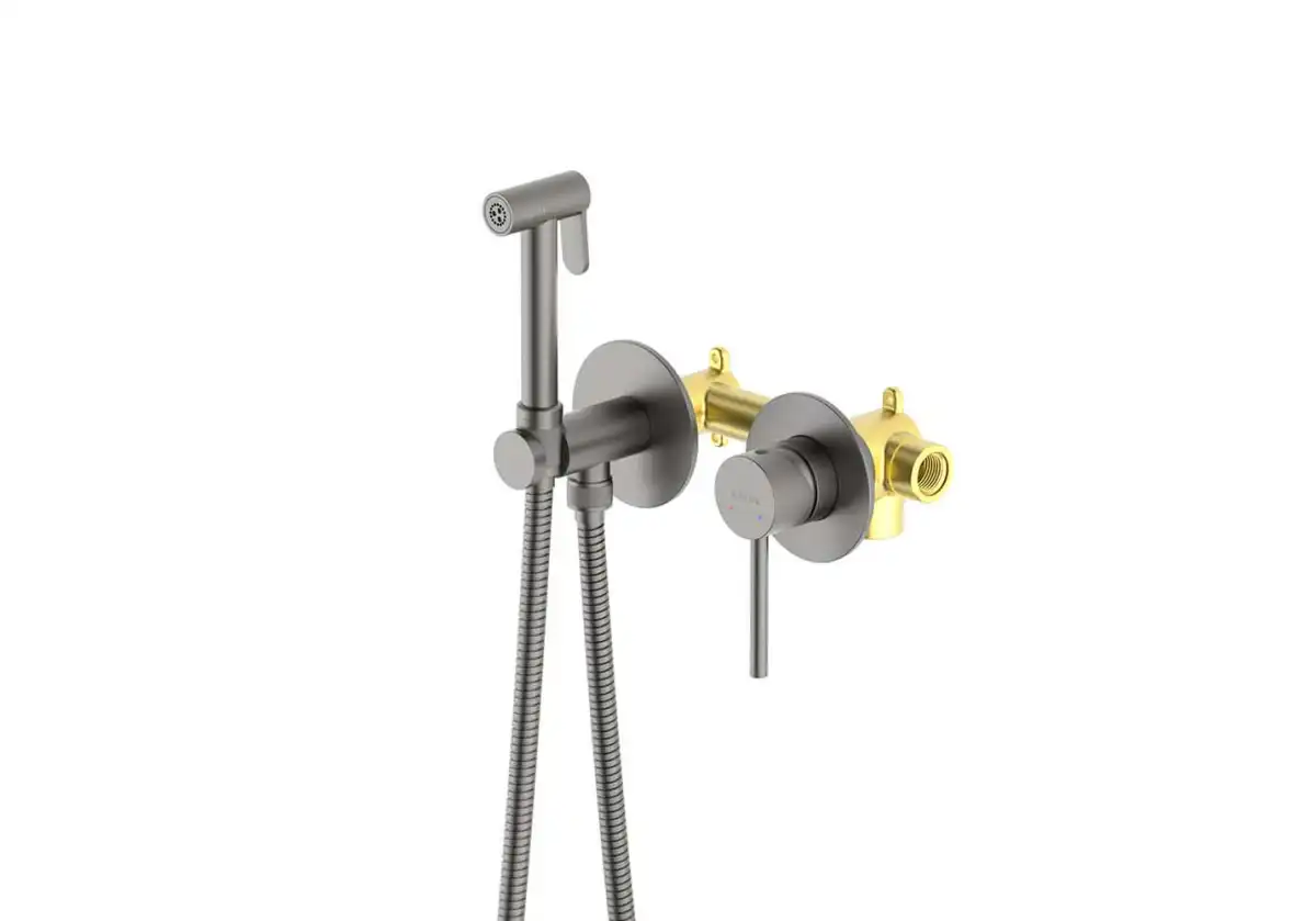 Aquatek | AQ1319BGM ЕВРОПА комплект для гигиенического душа встроенный 2 отв. (смеситель + гигиеническая лейка + шланг), оружейная сталь.