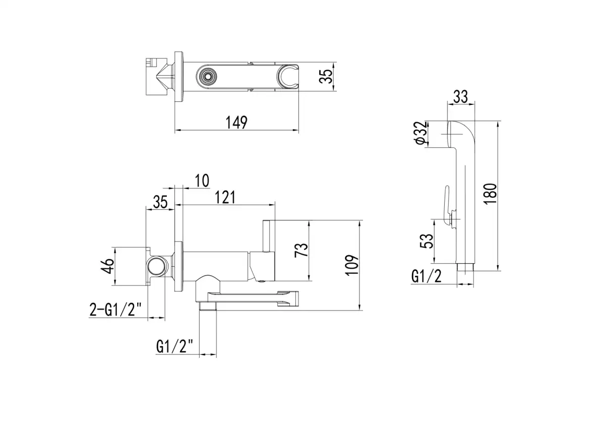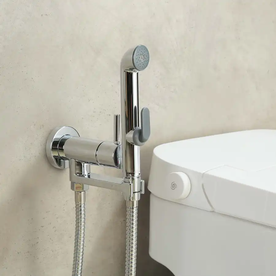 Комплектация1. Смеситель 2. Шланг для лейки 120 см из нержавеющей стали 3. Гигиеническая лейка оснащена нажимным механизмом для остановки потока воды 4. Декоративная накладка/отражатель из нер