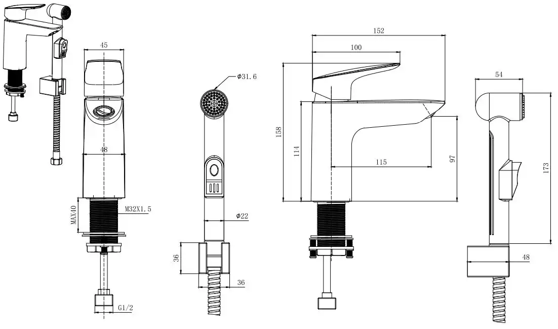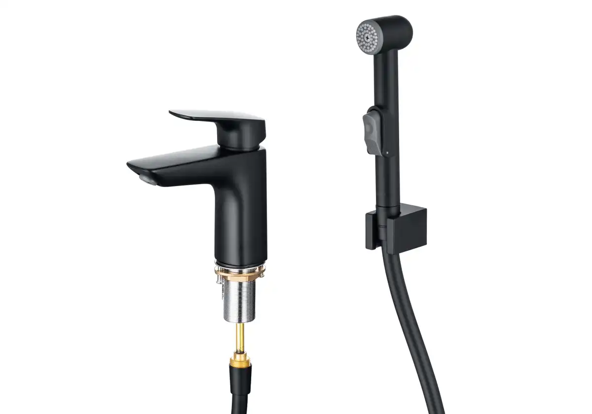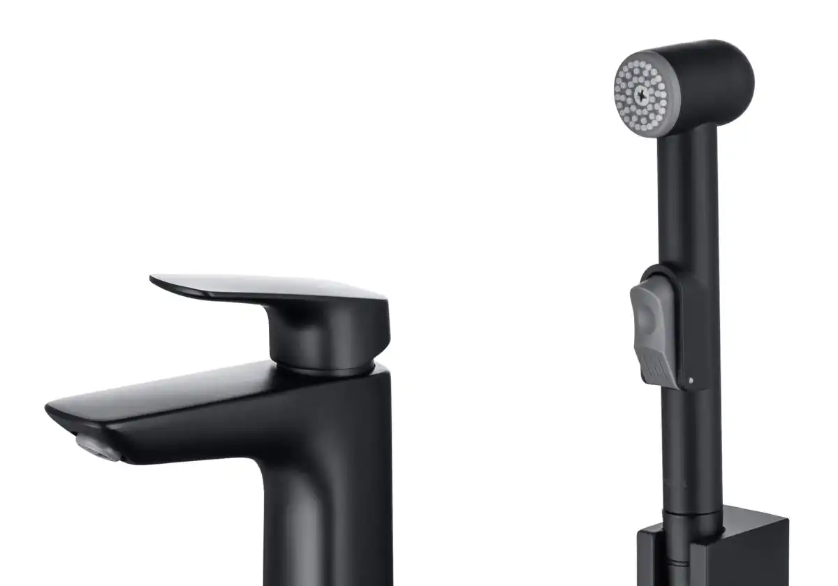 Смеситель для раковины 97 с гигиеническим ручным душем AQUATEK, матовый черный AQ1012MB ВЕГА