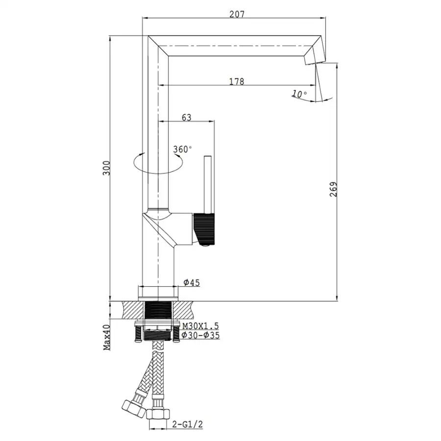 Смесители для кухни AVS 811-090-GM, оружейная сталь