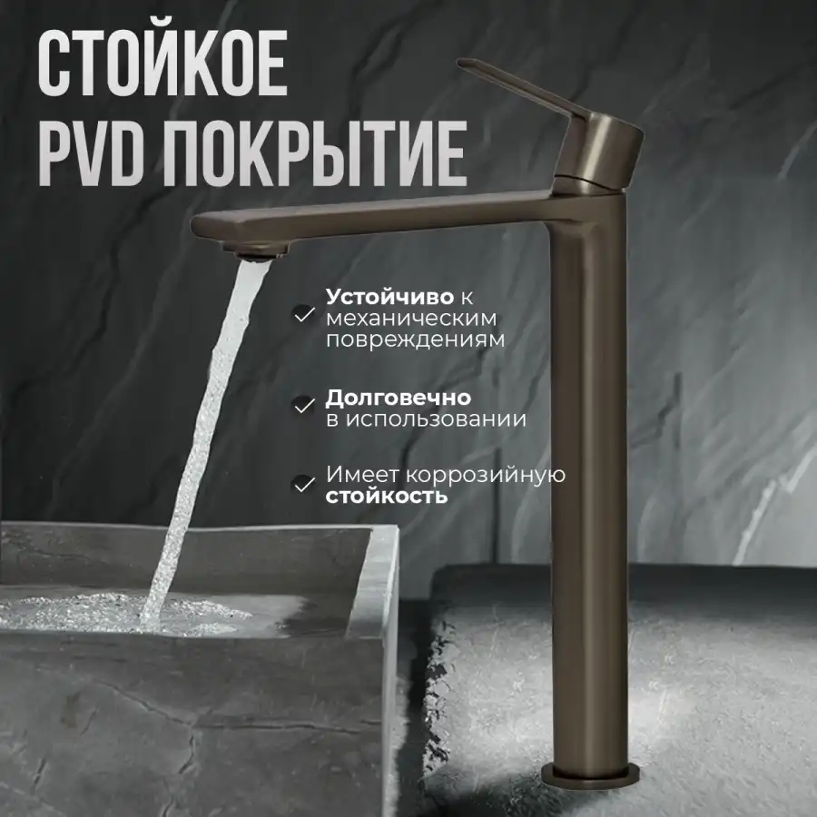 Смеситель для раковины AVS Elegant высокий, оружейная сталь, 811-401-GM.