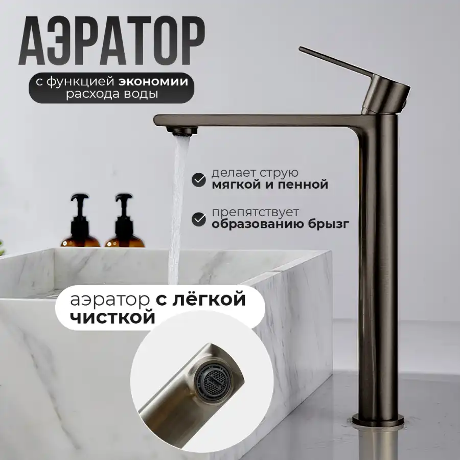 Смесители для раковины AVS Elegant 811-401-GM высокий, оружейная сталь