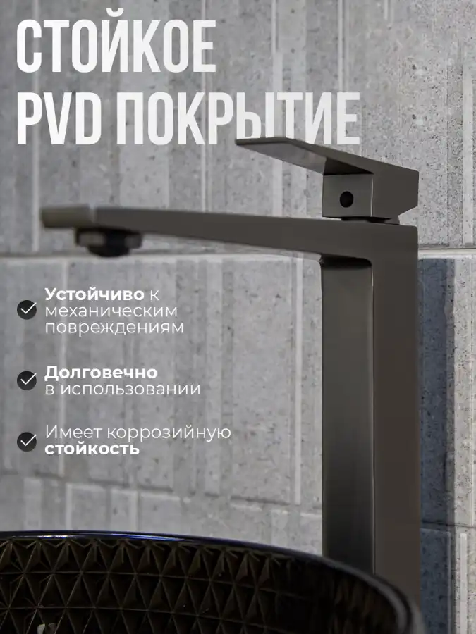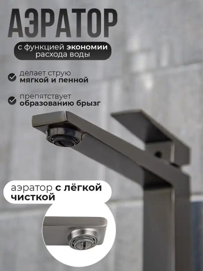Смесители для раковины AVS NEW CUBE 811-251-GM высокий, оружейная сталь