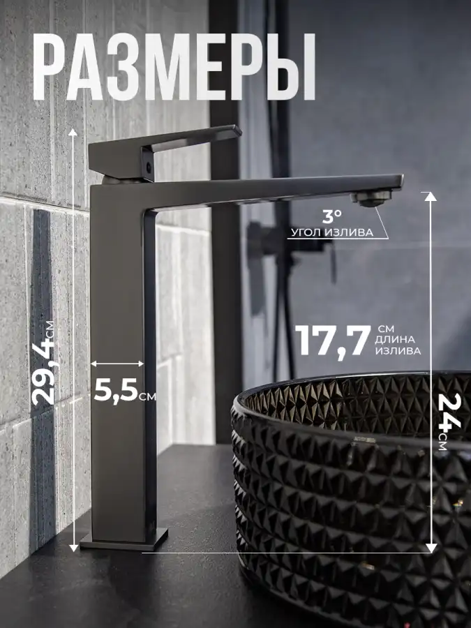 Смеситель для раковины AVS New Cube высокий, оружейная сталь, 811-251-GM.