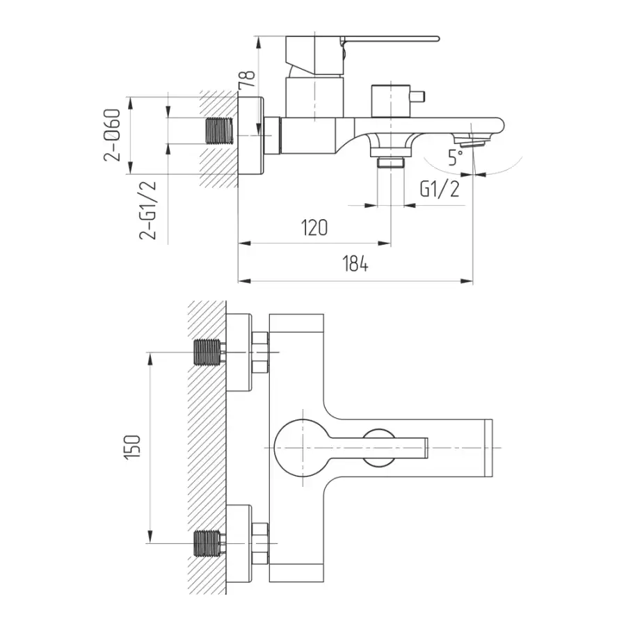 Смеситель для ванны с душем AVS Elegant 811-411-BN брашированный никель, 811-411-BN.