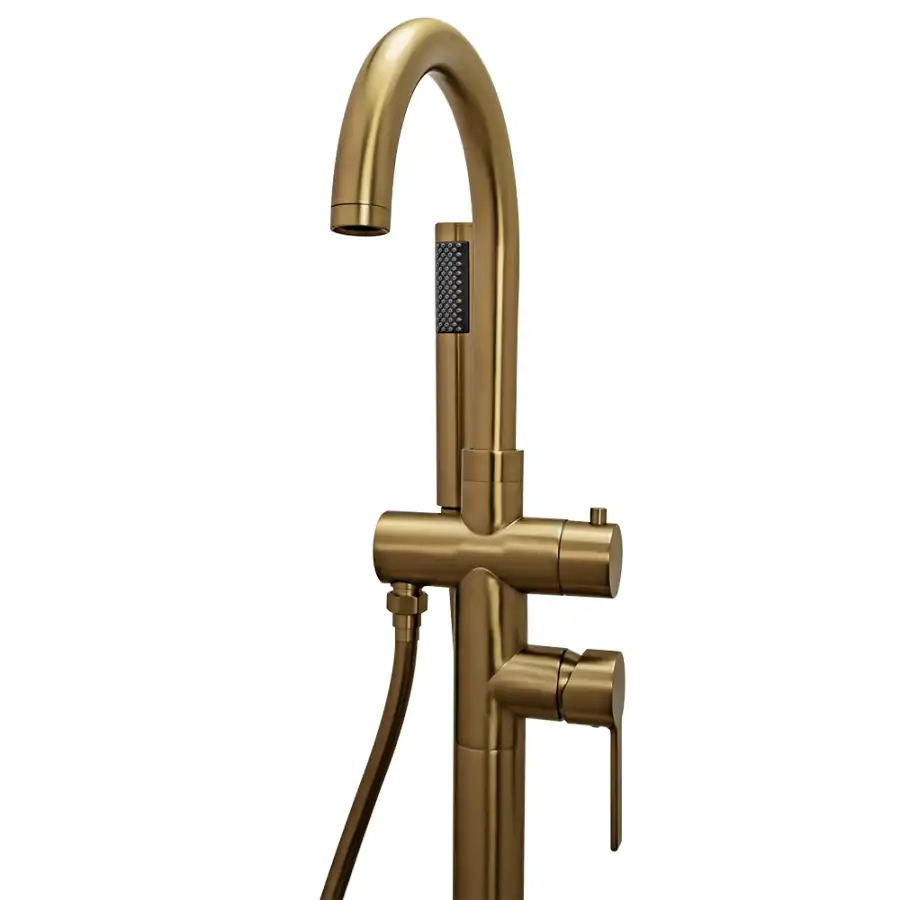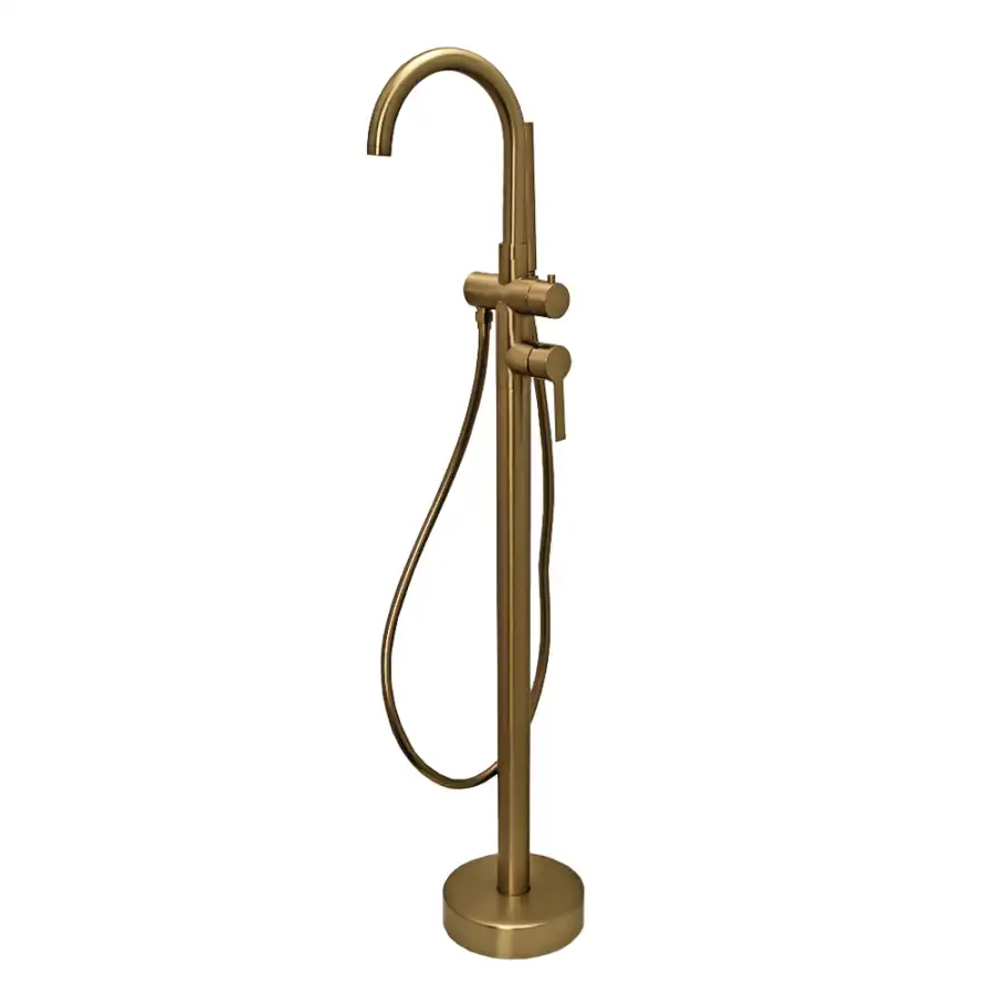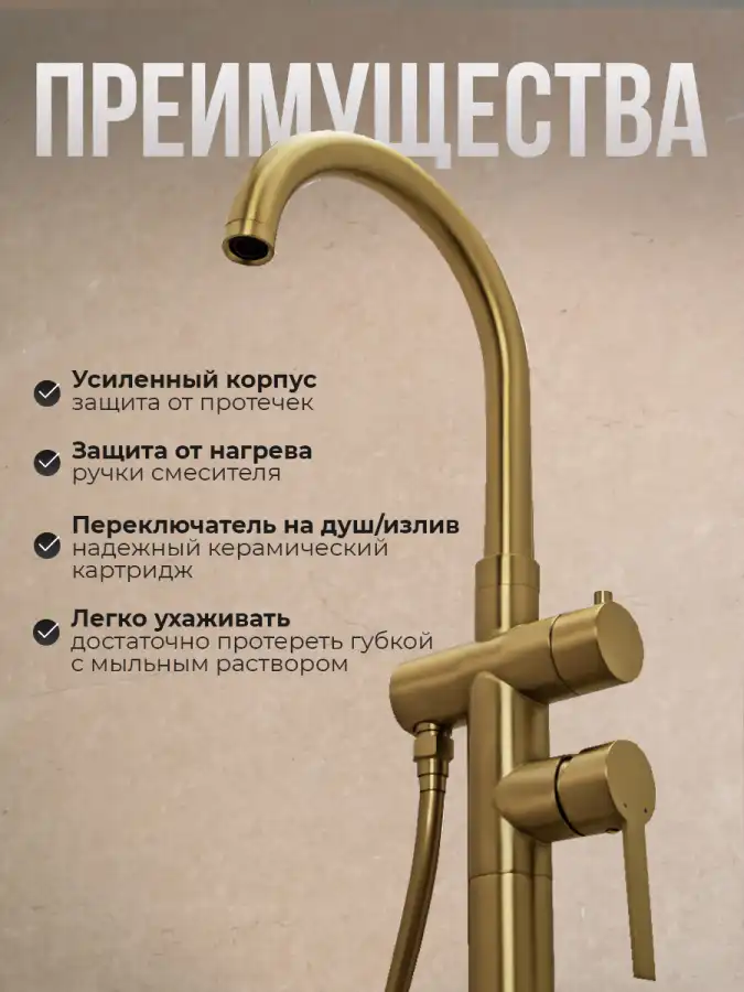 Смеситель для ванны с душем AVS Elegant напольный, брашированное золото, 811-412-BG.