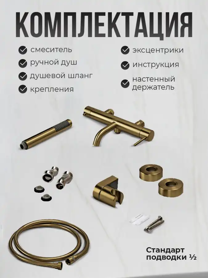 Смеситель для ванны с душем AVS Slimmer брашированное золото, 811-111-BG.