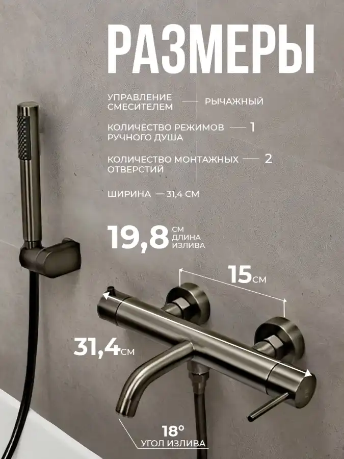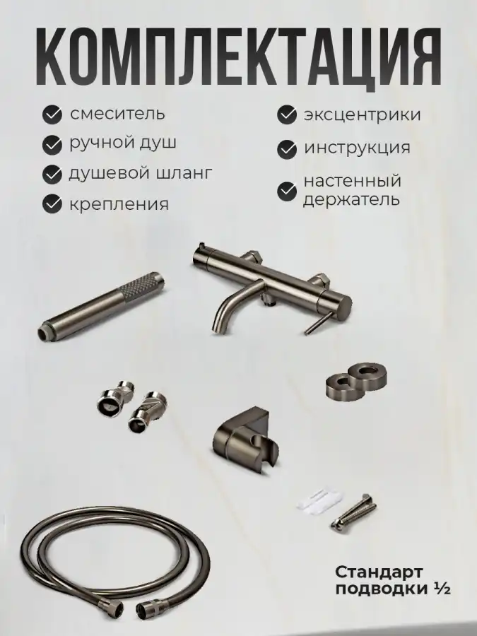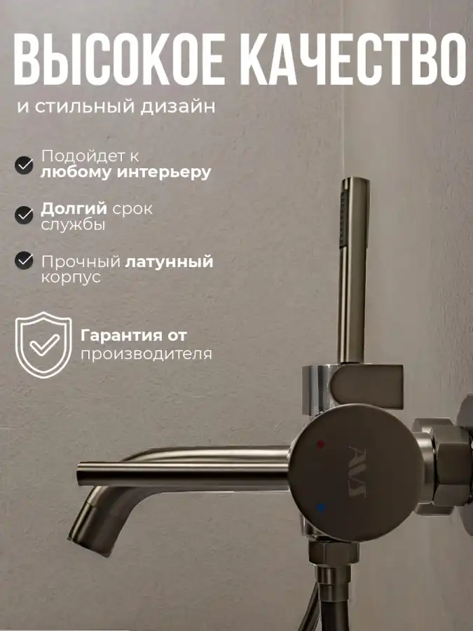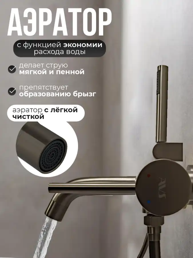 Смеситель для ванны с душем AVS Slimmer оружейная сталь, 811-111-GM.