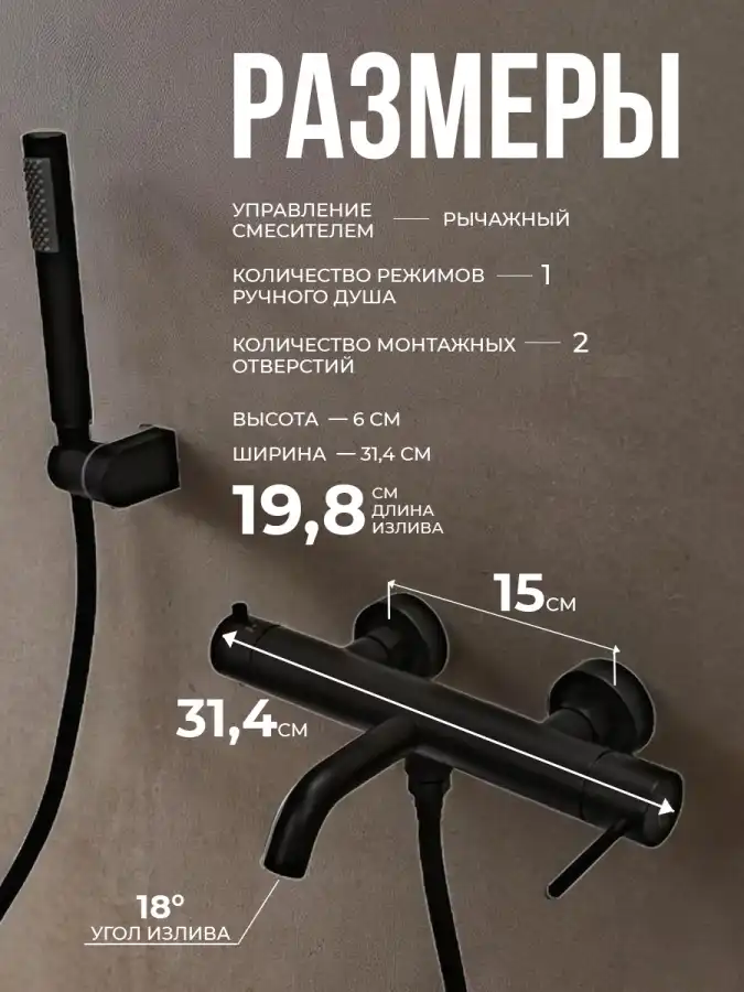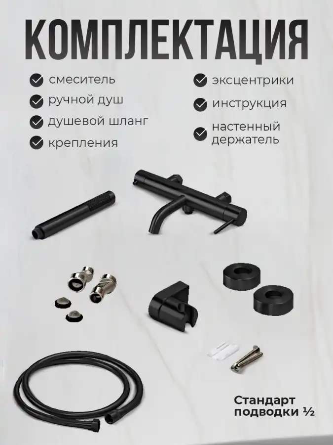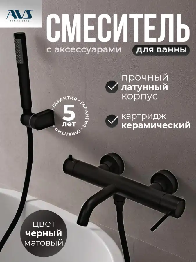 Смеситель для ванны с душем AVS Slimmer черный матовый, 811-111-MB.