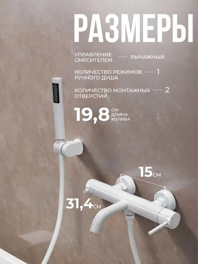 Смеситель для ванны с душем AVS Slimmer белый матовый, 811-111-MW.