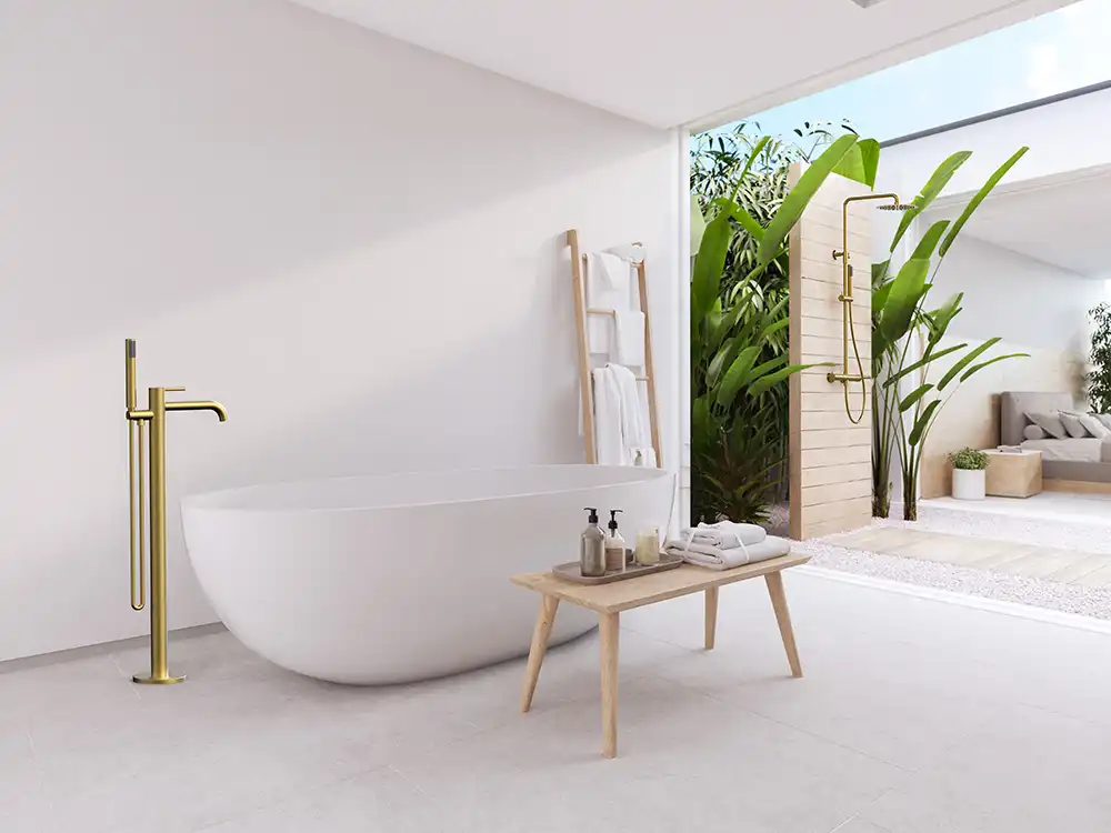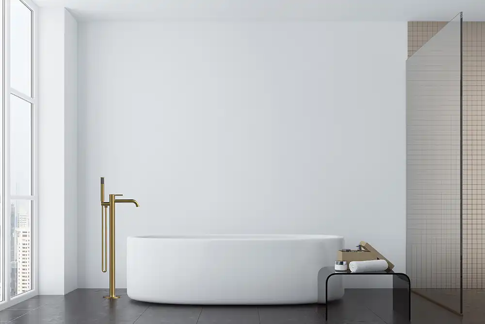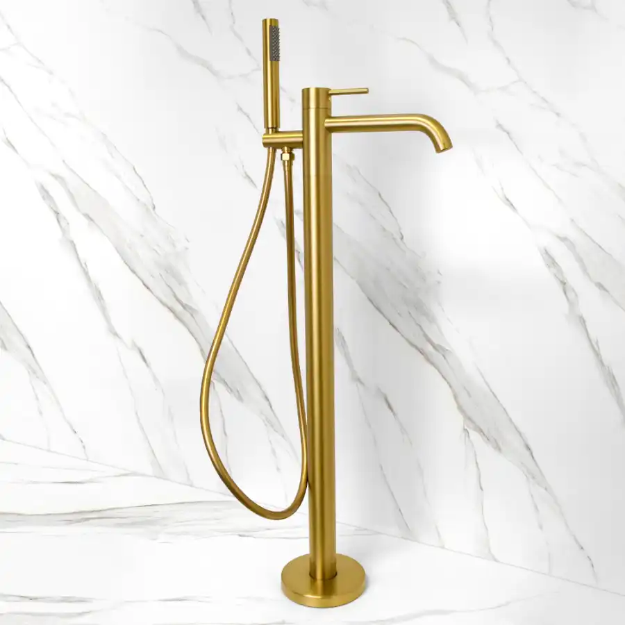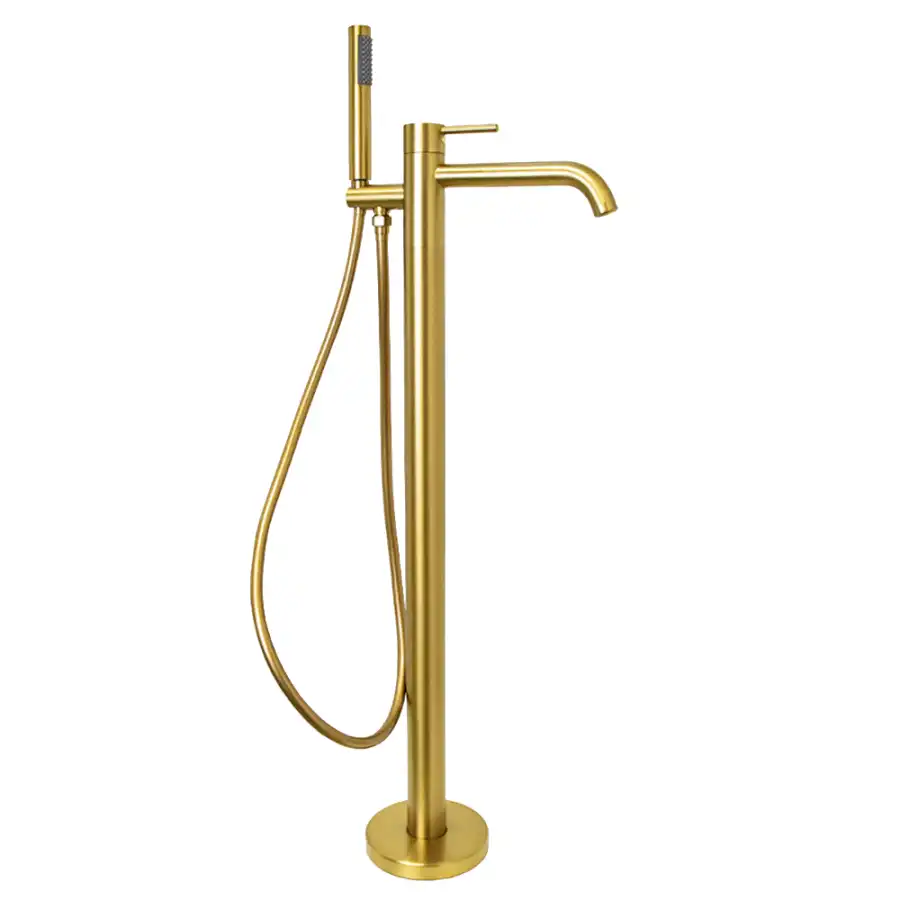 Смеситель для ванны с душем AVS Slimmer напольный, брашированное золото, 811-112-BG.
