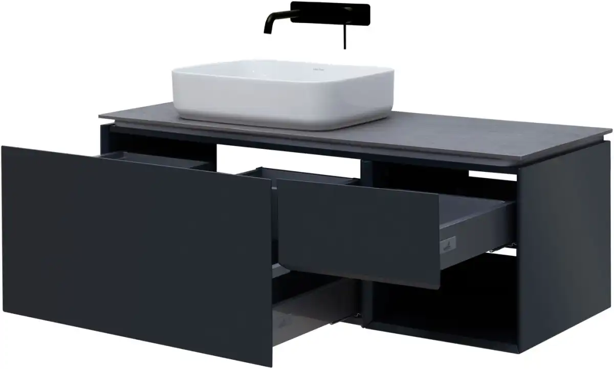 Плавное закрывание ящиков, полное выдвижение, прочное дно (толщина 16 мм), нагрузка до 30 кг.