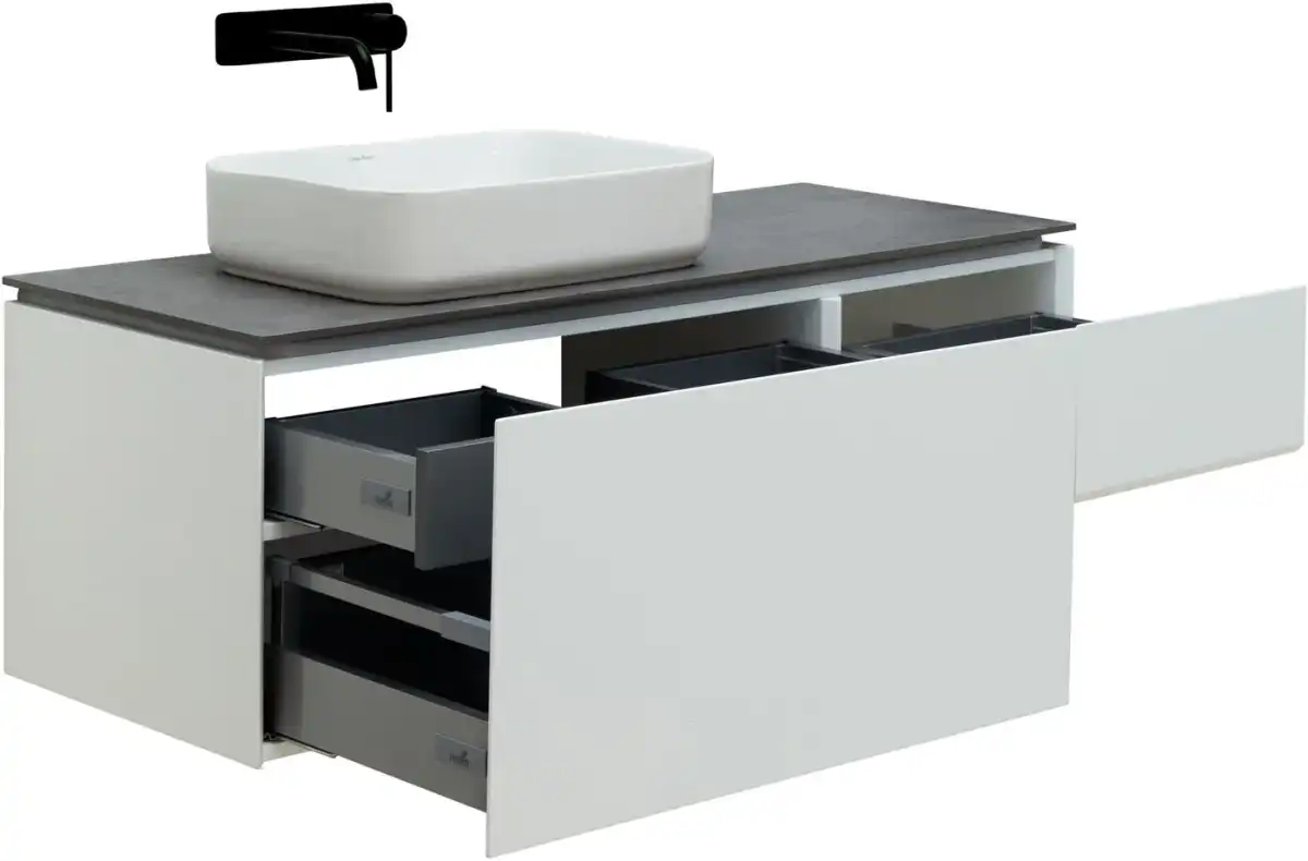 Плавное закрывание ящиков, полное выдвижение, прочное дно (толщина 16 мм), нагрузка до 30 кг.
