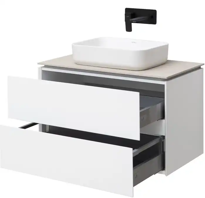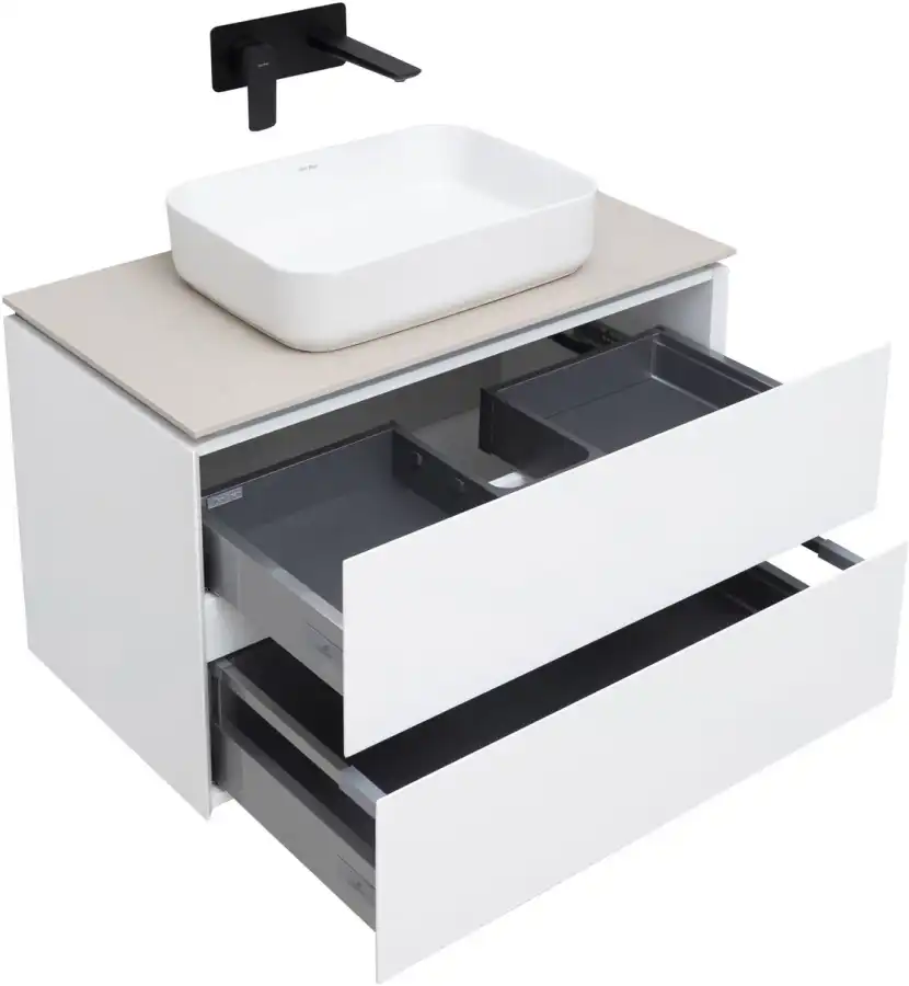 Плавное закрывание ящиков, полное выдвижение, прочное дно (толщина 16 мм), нагрузка до 30 кг.
