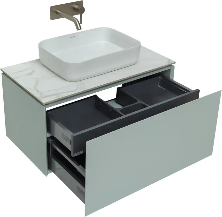 Плавное закрывание ящиков, полное выдвижение, прочное дно (толщина 16 мм), нагрузка до 30 кг.