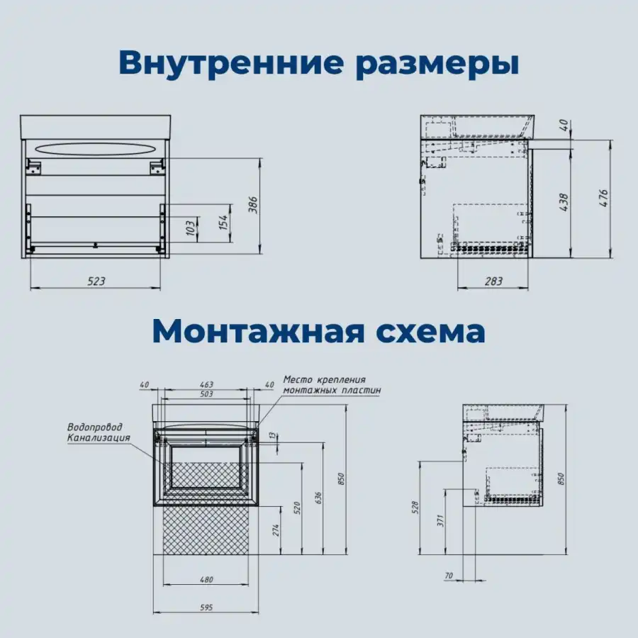 Тумба под раковину Aquanet Агата 60 белый сатин, 345480. Раковина приобретается отдельно.