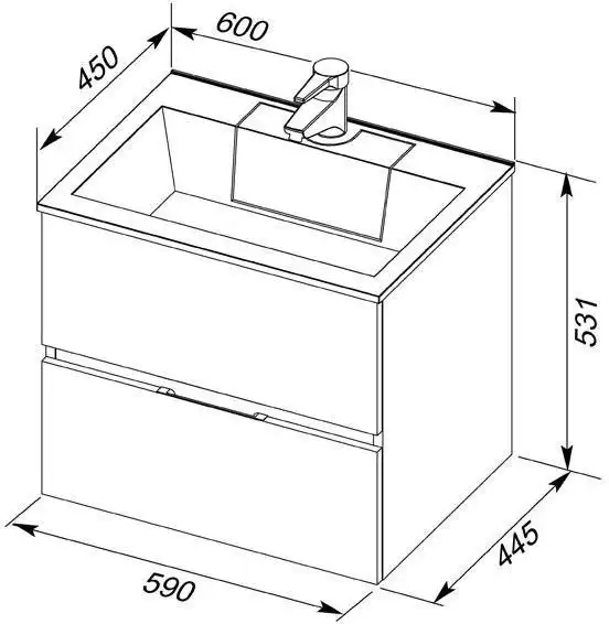 Тумба под раковину Aquanet Алвита 60 см, подвесная, цвет Серый, 183991. Раковина приобретается отдельно.