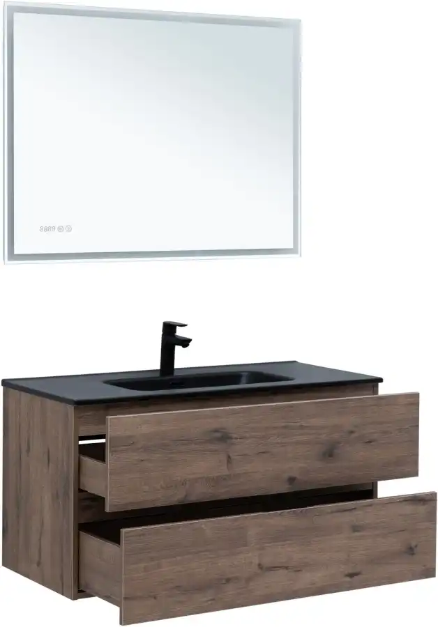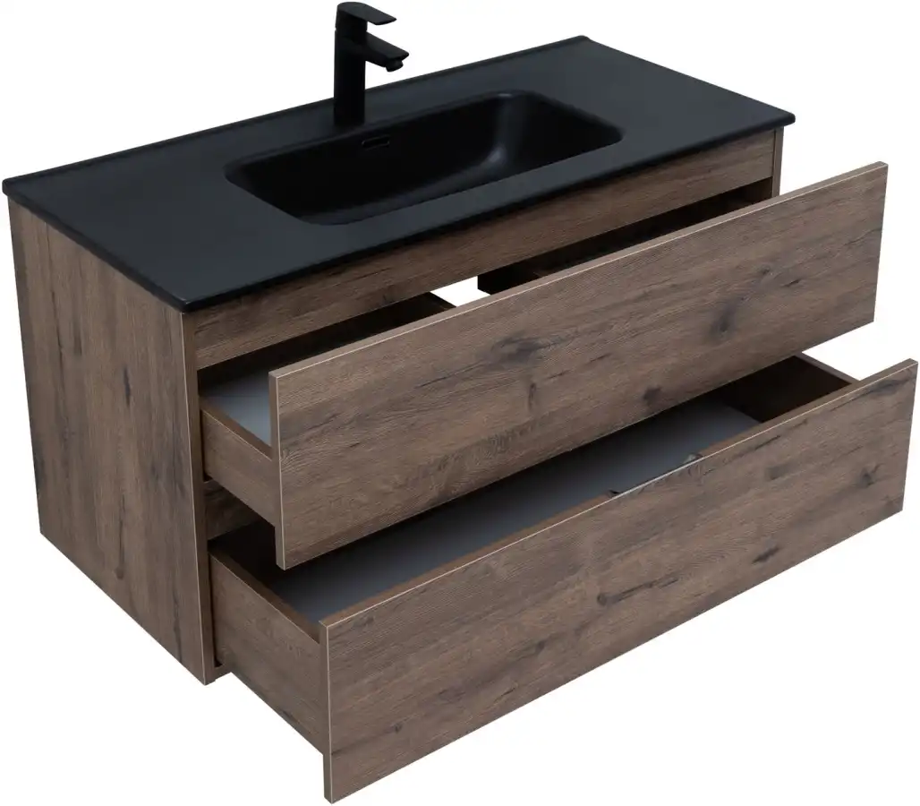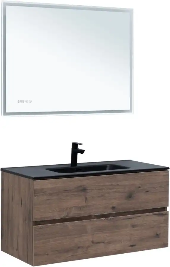 Тумба под раковину Aquanet Алвита New 100 см, подвесная, цвет Дерево темное, 334188. Раковина приобретается отдельно.