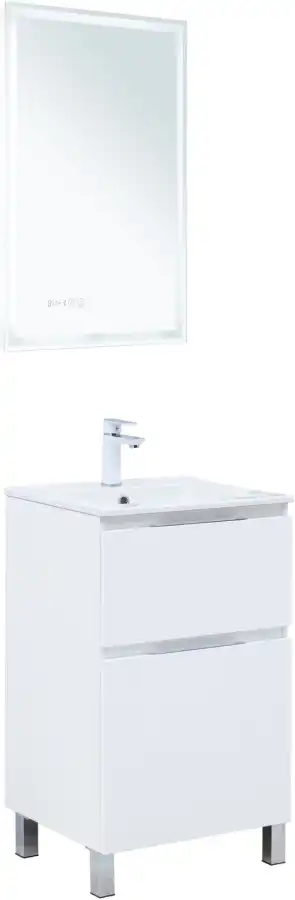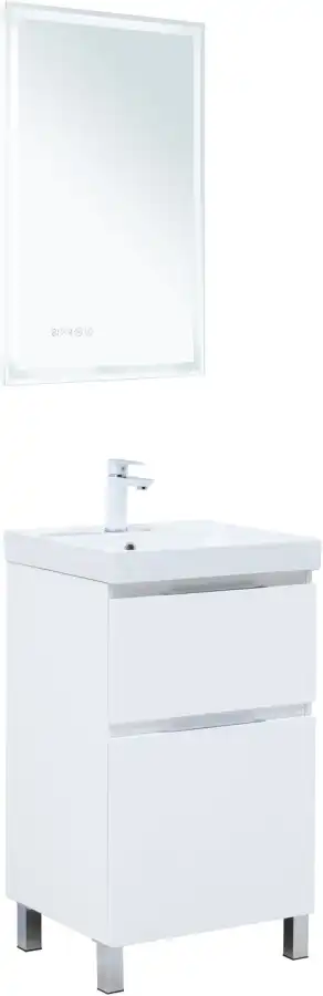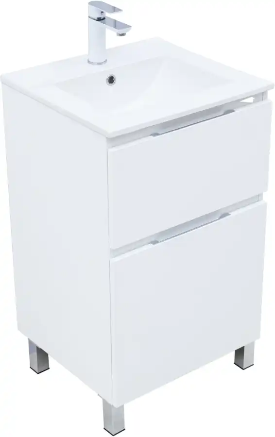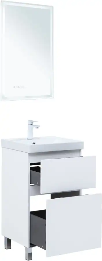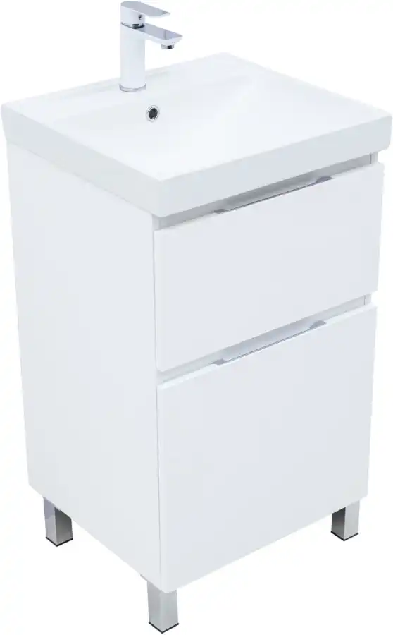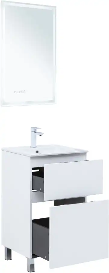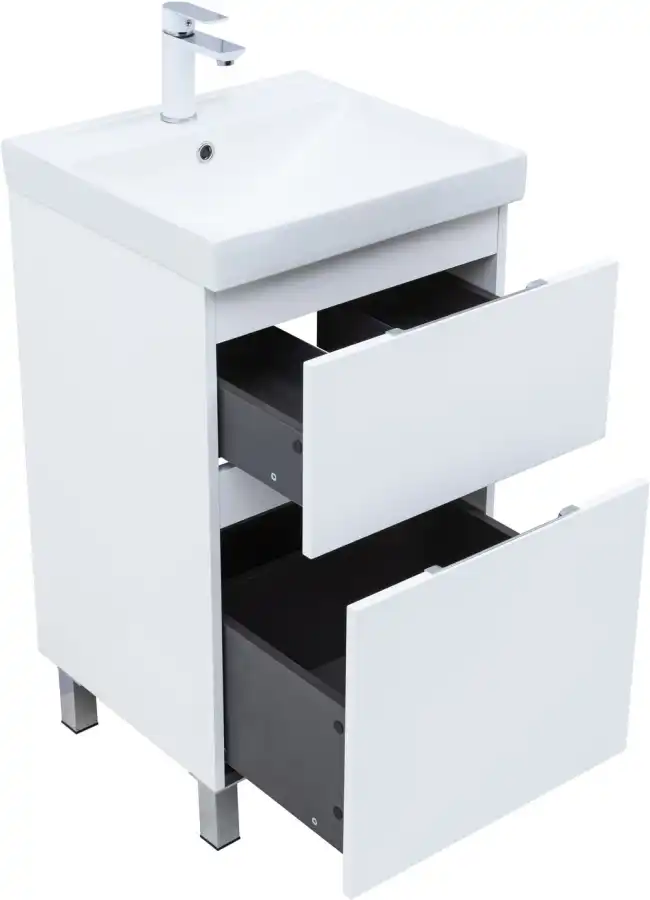 Тумба под раковину Aquanet Алвита New 50 напольная, белый матовый. Внутренние детали изготовлены из влагостойкой ЛДСП в цвете антрацит.