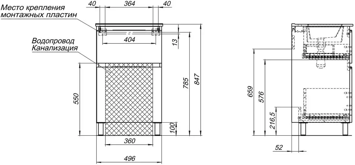 Металлические опоры не только придают тумбе устойчивость, но и облегчают уборку под ней. Благодаря предусмотренному месту для подводки коммуникаций, установка тумбы не составит труда.