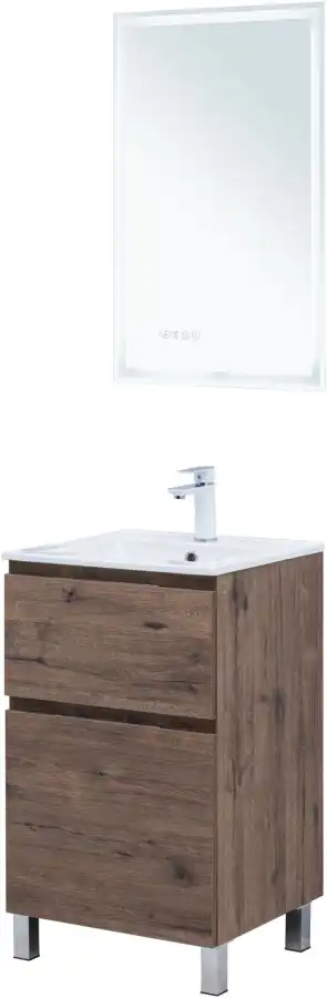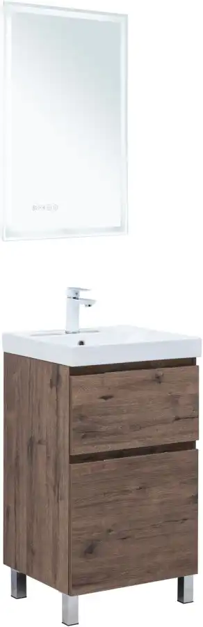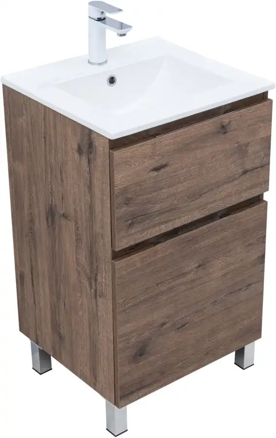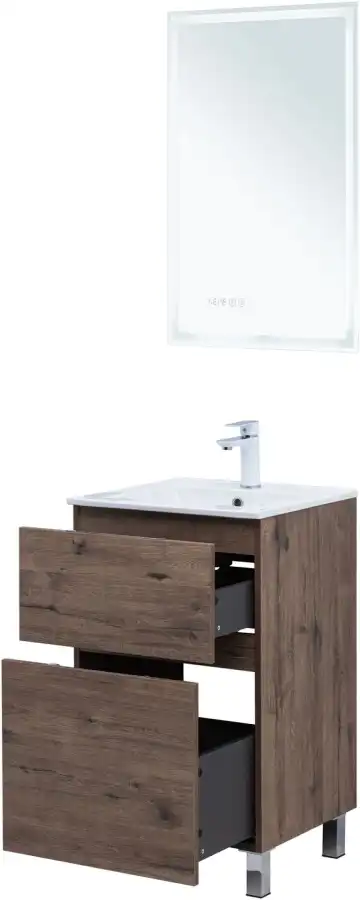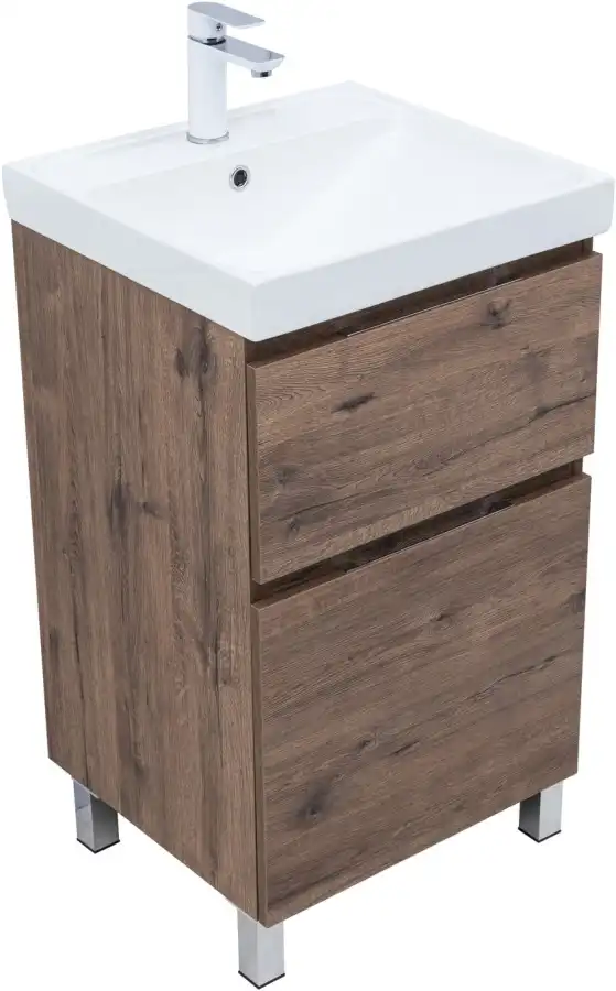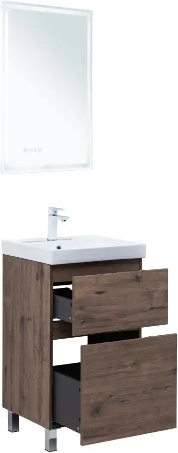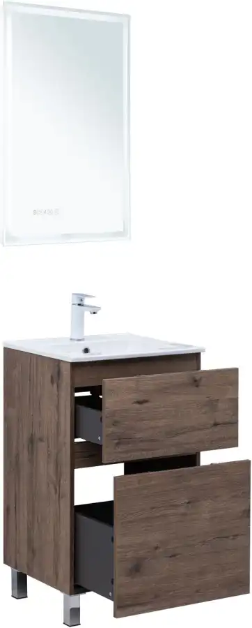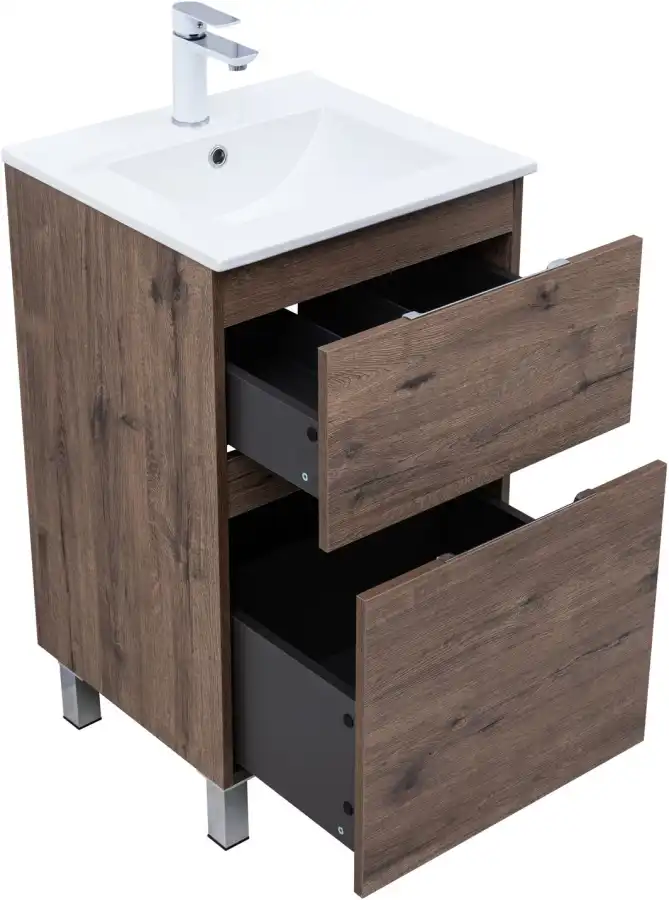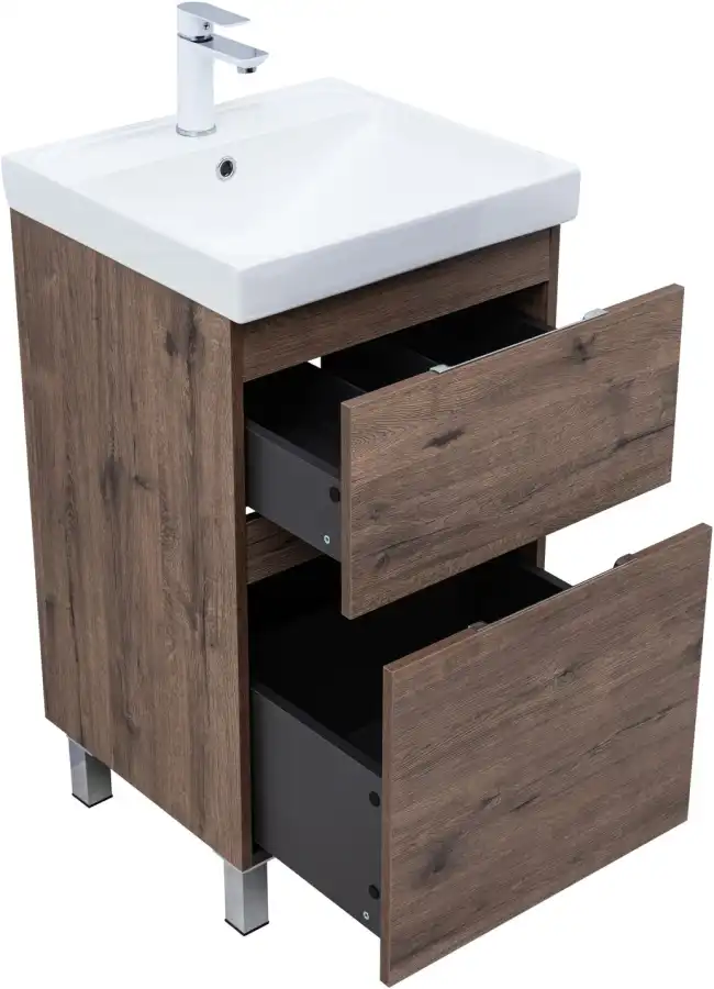 Тумба под раковину Aquanet Алвита New 50 напольная, дуб веллингтон табак отличается не только элегантным внешним видом, но и продуманной конструкцией. Внутренние детали изготовлены из влагостойкой ЛДСП в цвете антрацит.