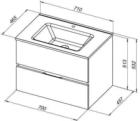 Тумба под раковину Aquanet Алвита New 70 см, подвесная, цвет Серый, 303908. Раковина приобретается отдельно.