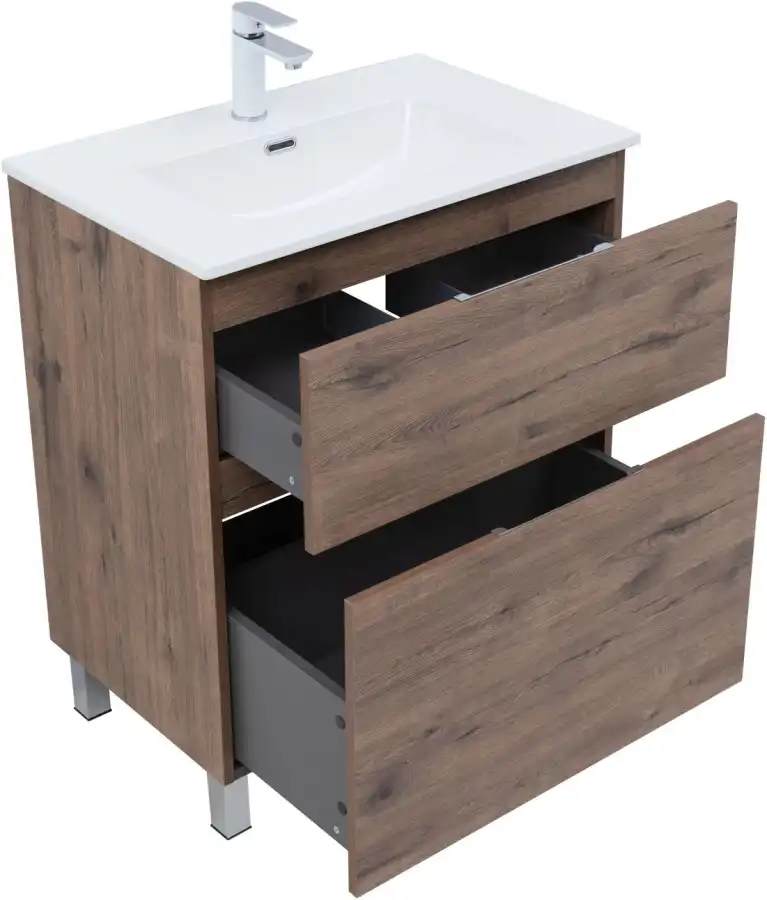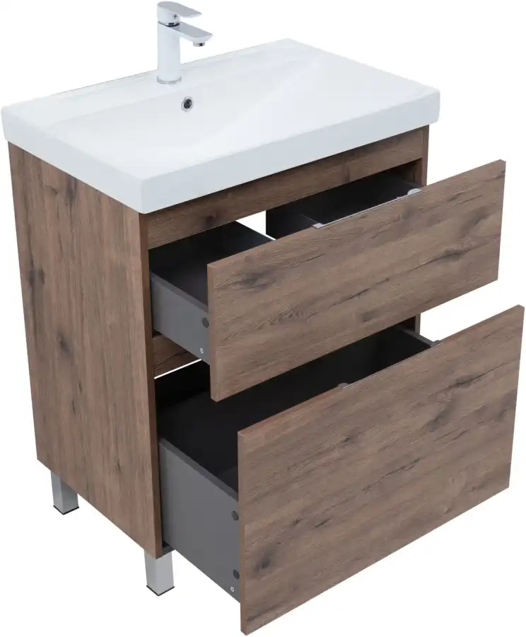 Тумба под раковину Aquanet Алвита New 70 напольная, дуб веллингтон табак отличается не только элегантным внешним видом, но и продуманной конструкцией. Внутренние детали изготовлены из влагостойкой ЛДСП в цвете антрацит.