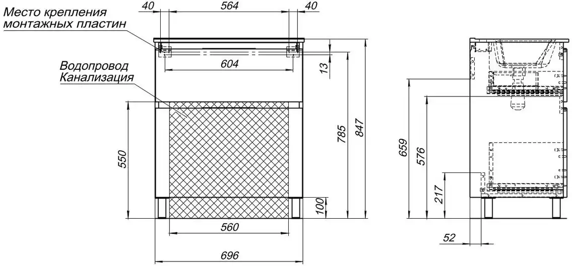 В комплекте предусмотрены металлические опоры (4 шт, высота 100 мм), а также пластиковое ограждение сифона в сером цвете. Прочное дно нижнего ящика, изготовленное из влагостойкой ЛДСП толщиной 16 мм, обеспечивает дополнительную устойчивость и долговечность.