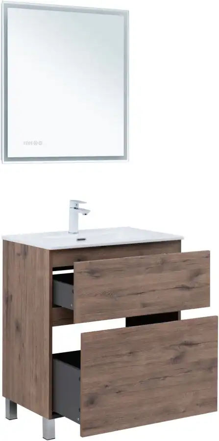 В тумбах за нижним ящиком предусмотрено место для подводки коммуникаций снизу. Тумбы комплектуются керамическими раковинами Flat 50/60/70/80/100 (Aquanet) или Flash 50/60/70/80/100 (Aquanet), что позволяет подобрать оптимальное решение для любой ванной комнаты.